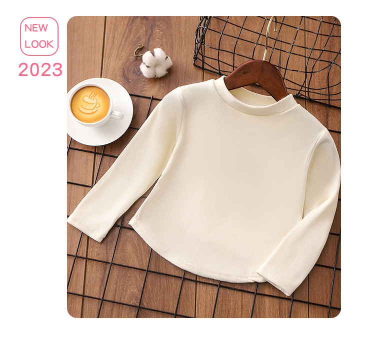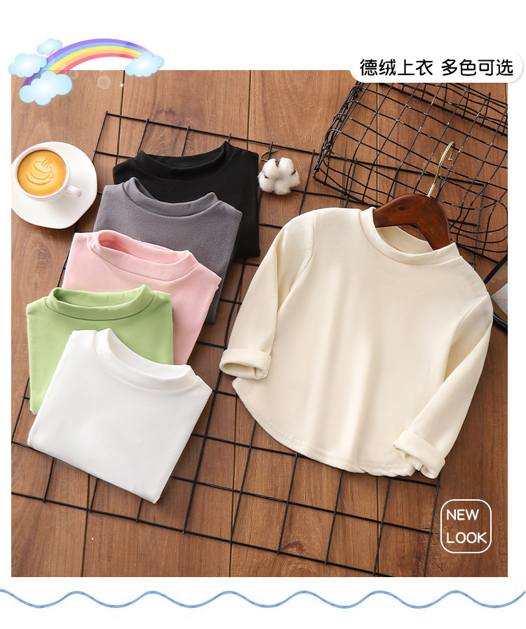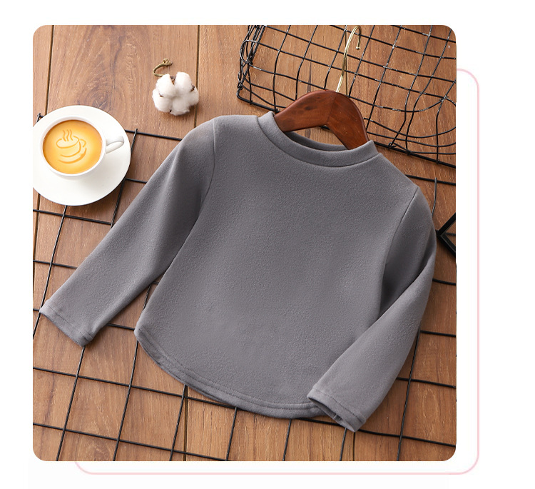 어린이 벨벳 크루넥 솔리드 컬러 베이스 셔츠 가을과 겨울 여아 소년 긴팔 티셔츠 큰 어린이 내부 따뜻한 탑스토어 가기