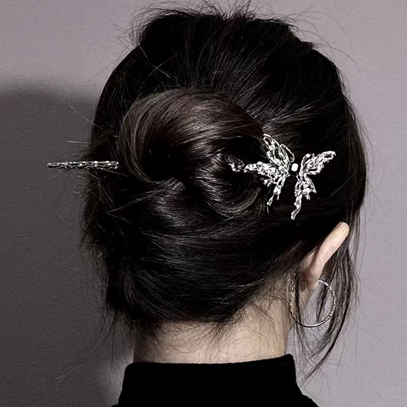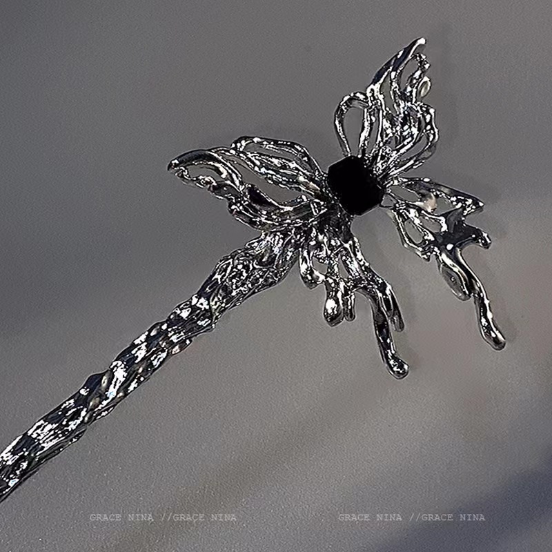 새로운 중국 스타일 액체 금속 나비 머리핀 멋진 느낌 향신료 소녀 패션 원래 간단한 틈새 머리 머리핀