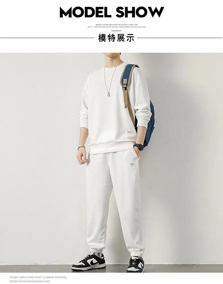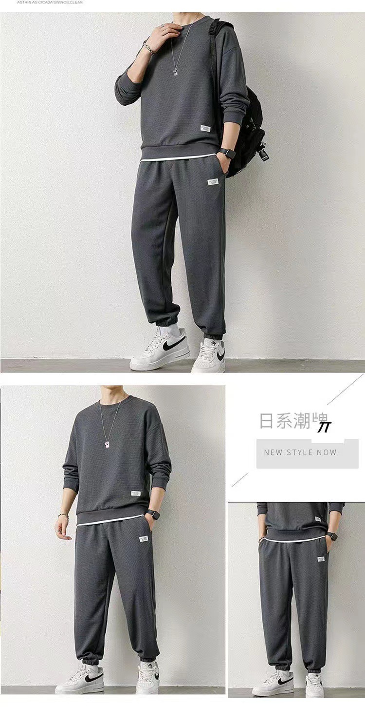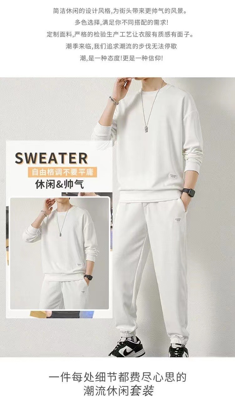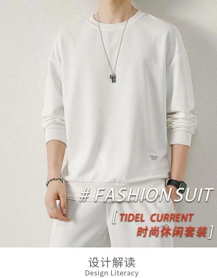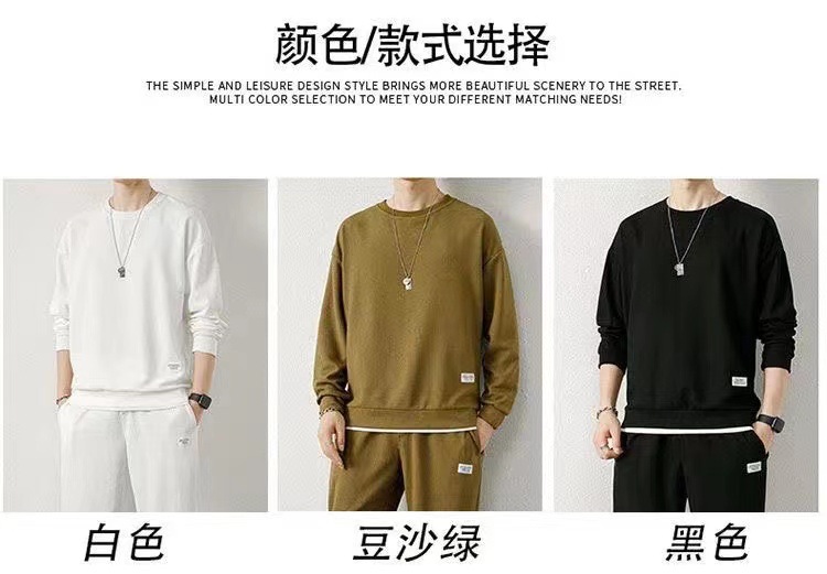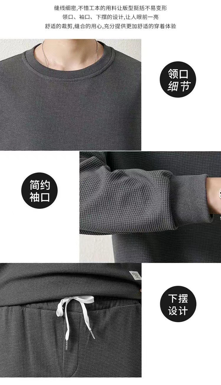 와플 기모 두껍게 플러스 사이즈 스웨터 남성 가을과 겨울 단색 캐주얼 스포츠 남성 가짜 두 조각 세트스토어 가기