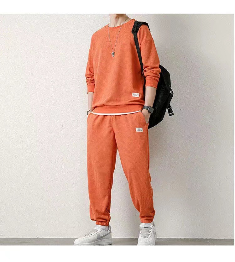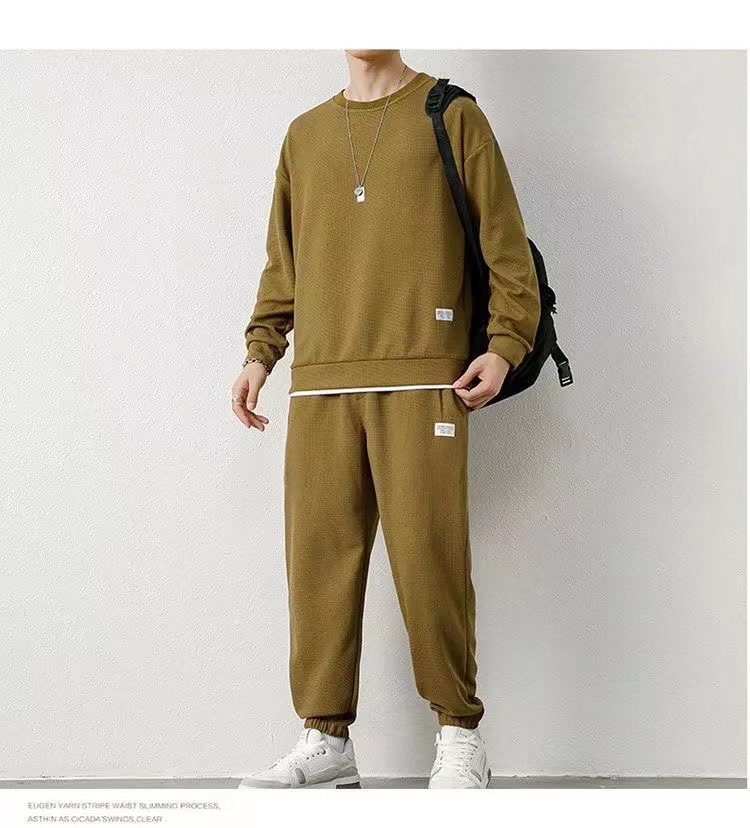 와플 기모 두껍게 플러스 사이즈 스웨터 남성 가을과 겨울 단색 캐주얼 스포츠 남성 가짜 두 조각 세트