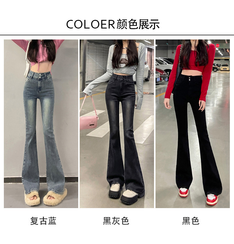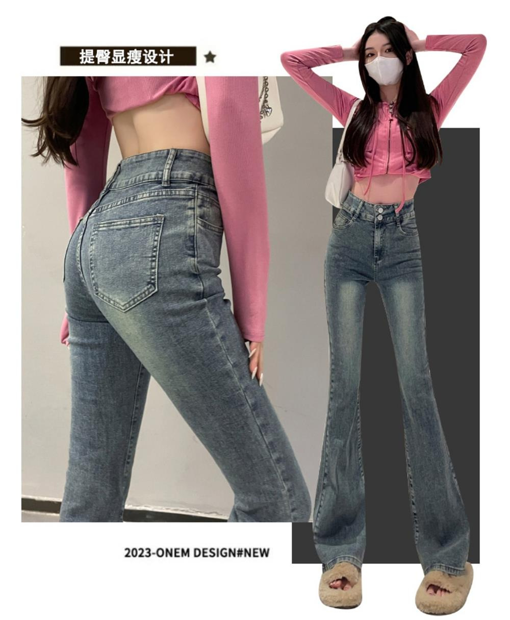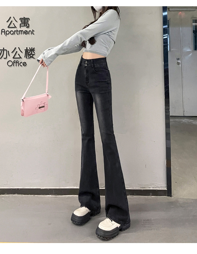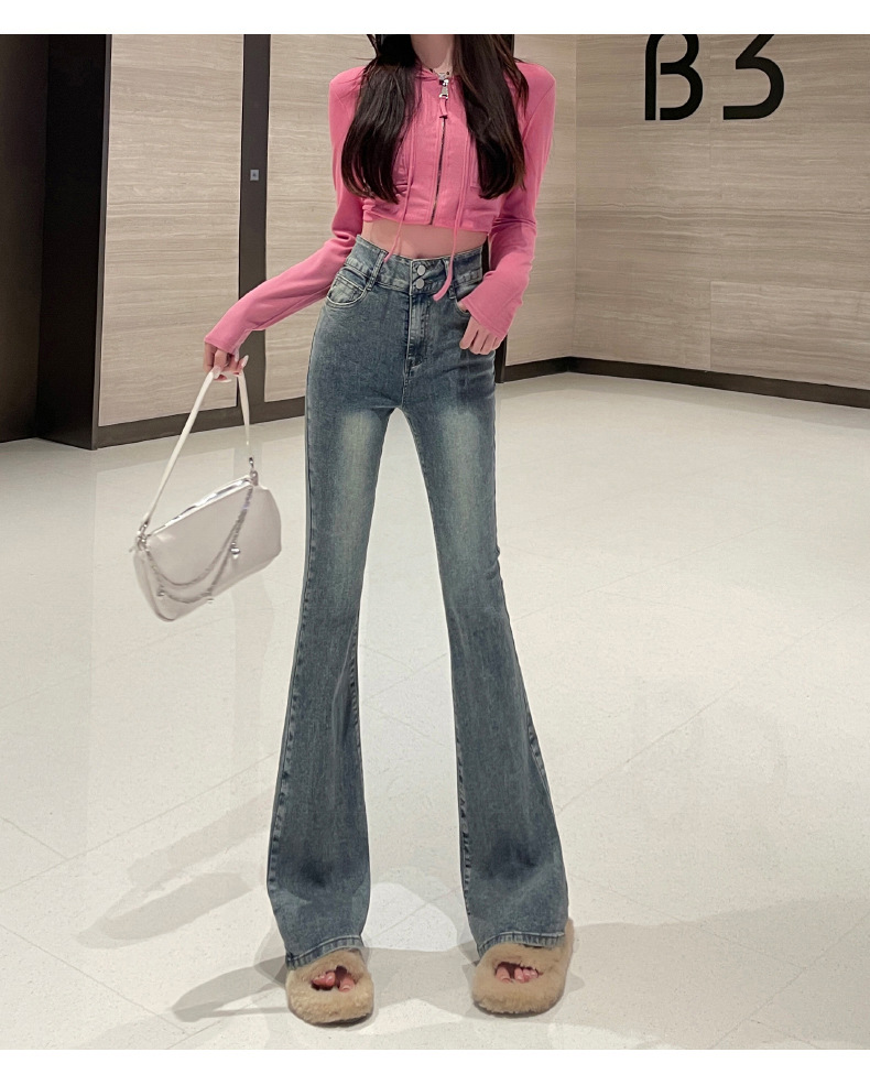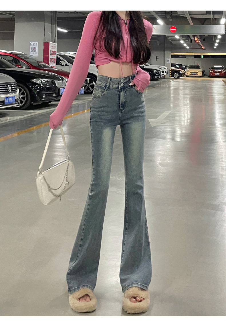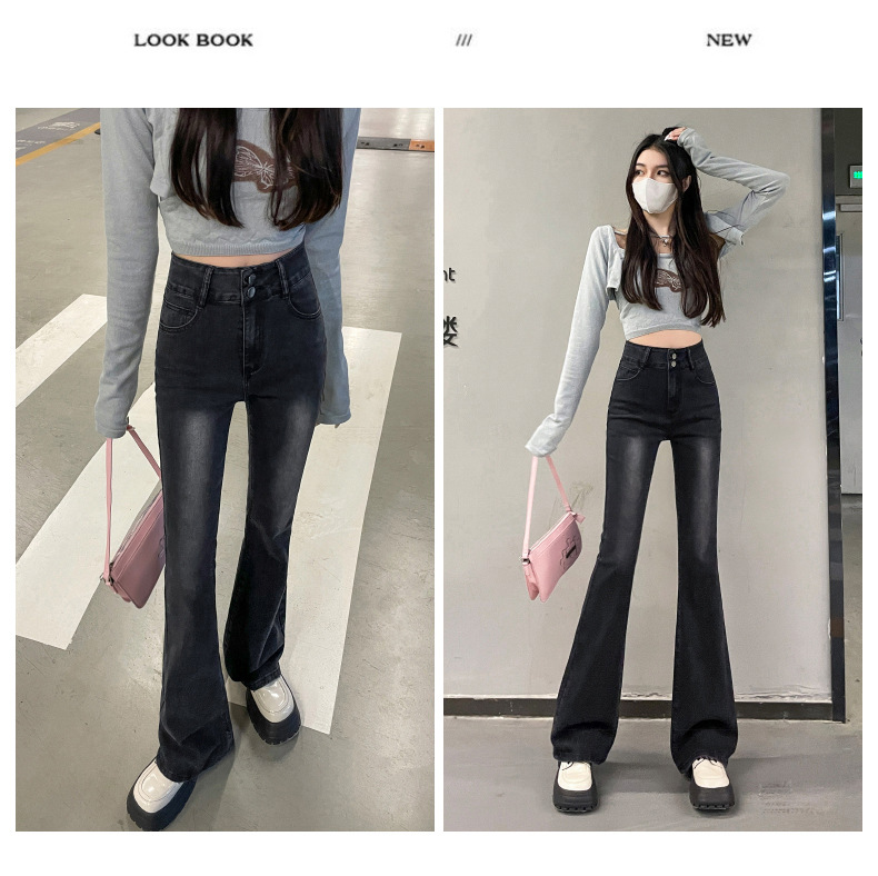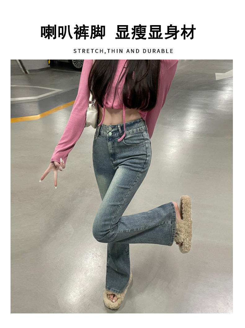 하이웨이스트 부츠컷 청바지 여성용 2026년 봄/가을 신상 슬림핏 신축성 있는 롱 팬츠스토어 가기
