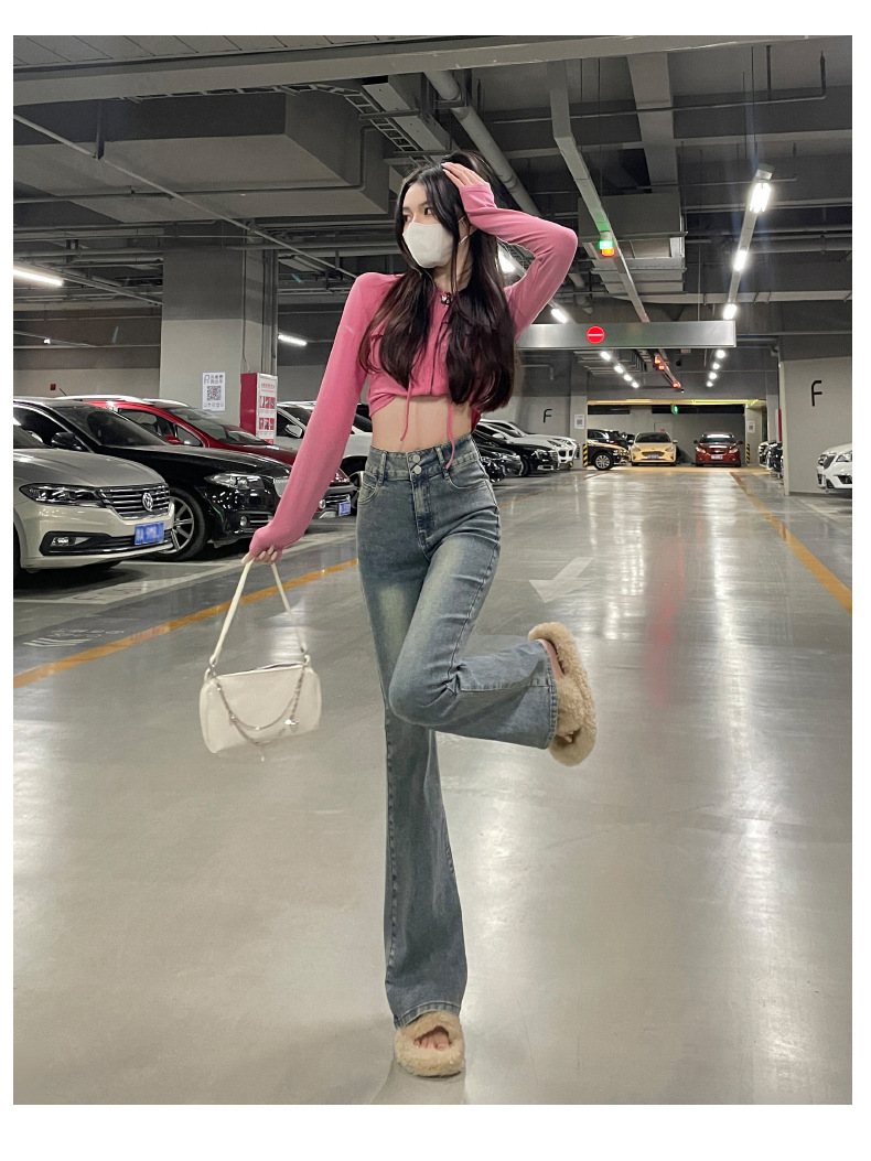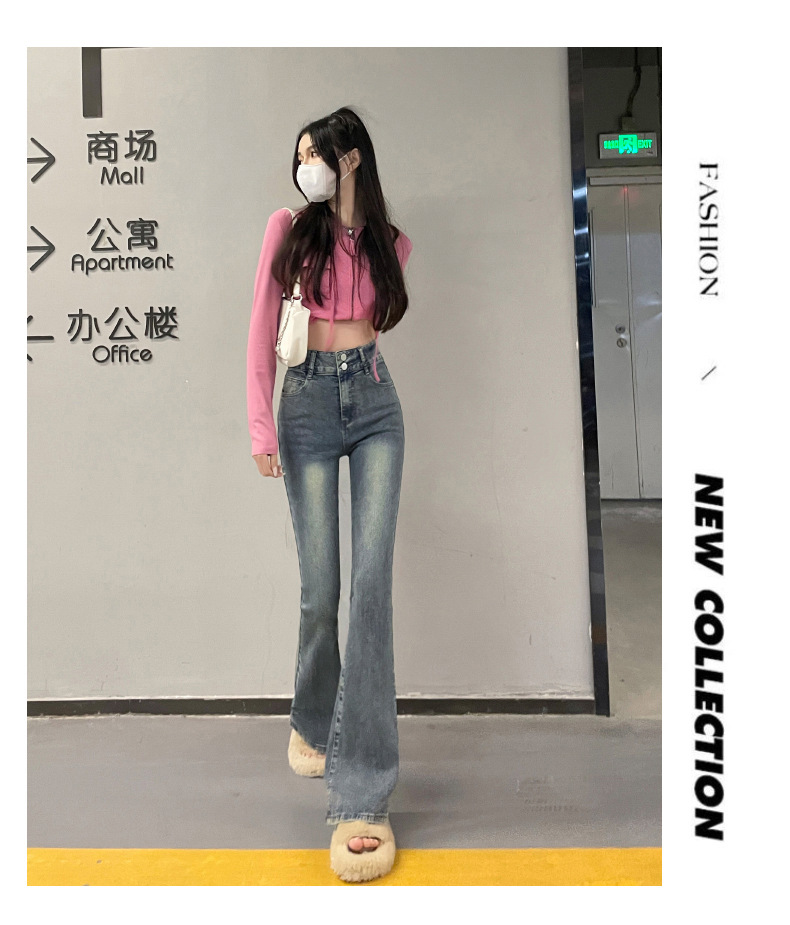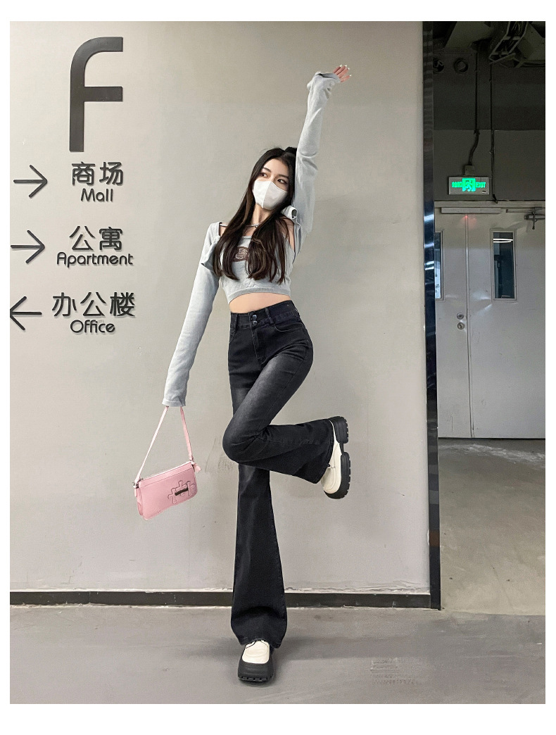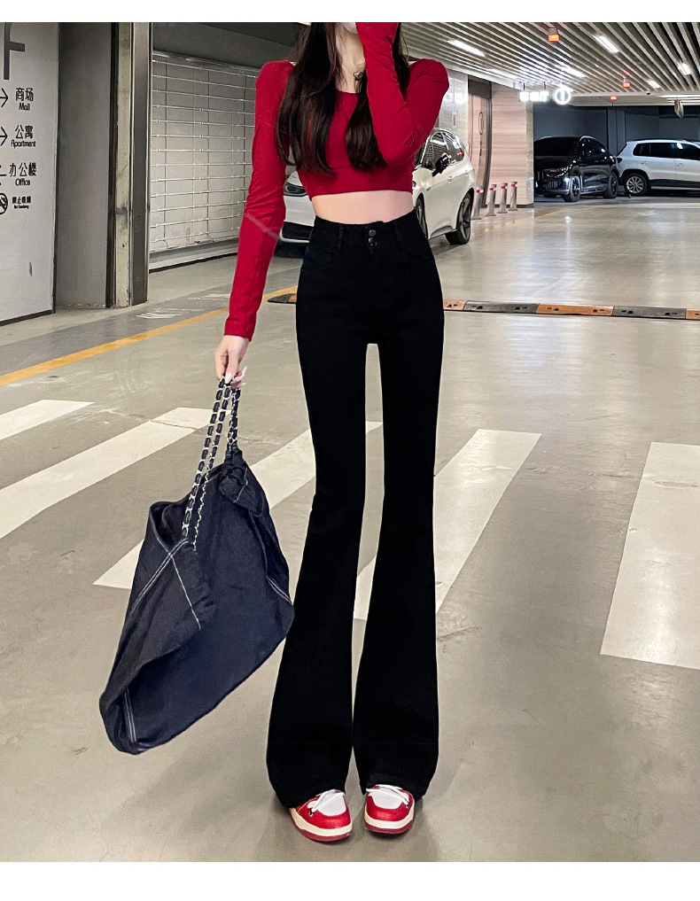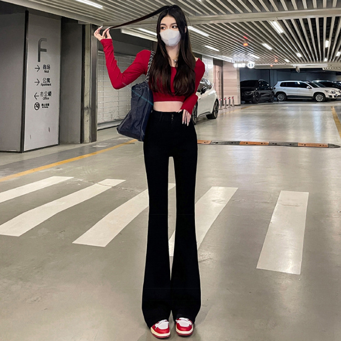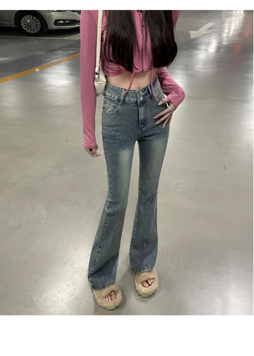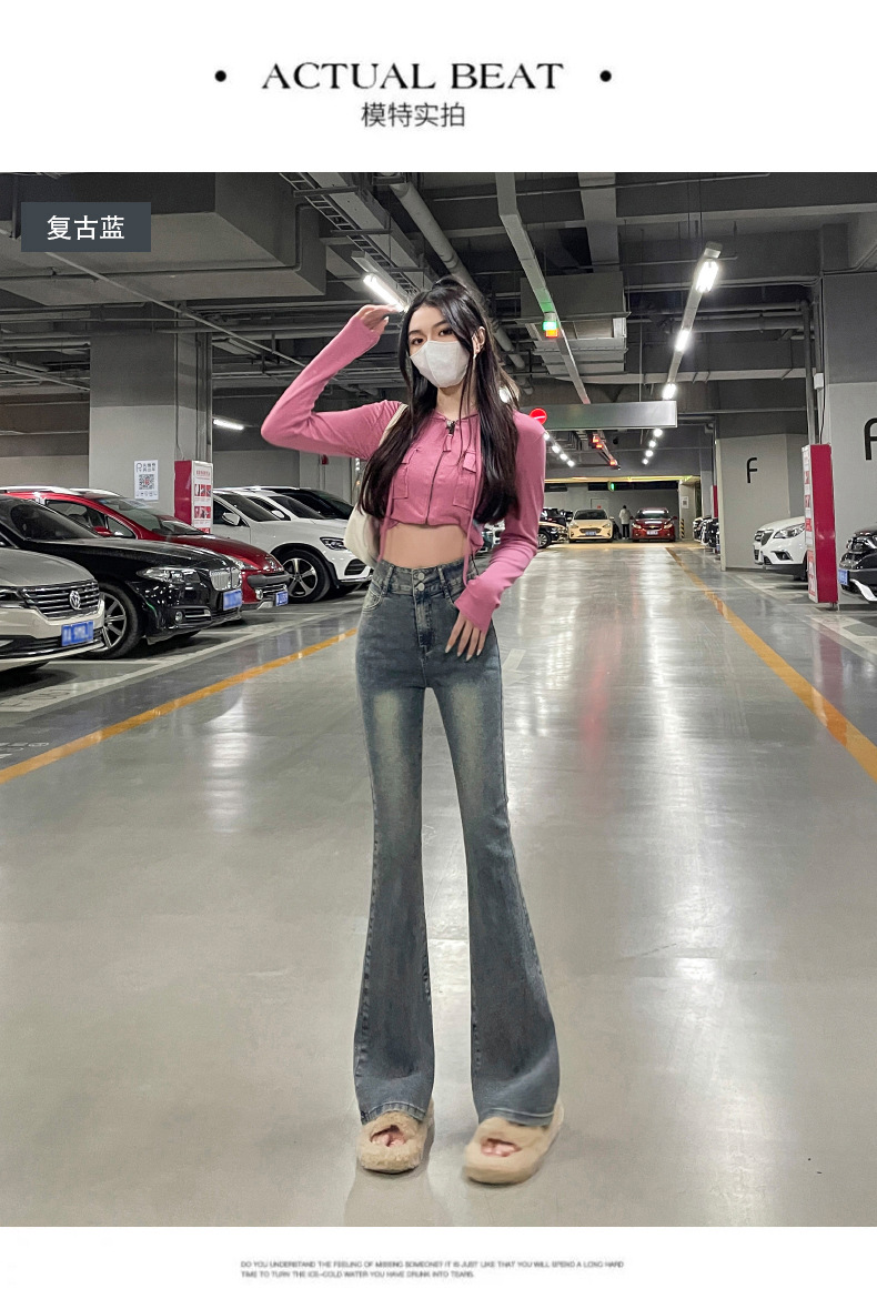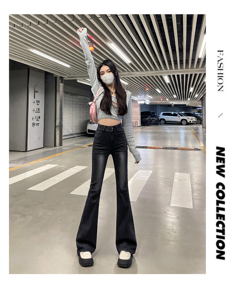 하이웨이스트 부츠컷 청바지 여성용 2026년 봄/가을 신상 슬림핏 신축성 있는 롱 팬츠스토어 가기