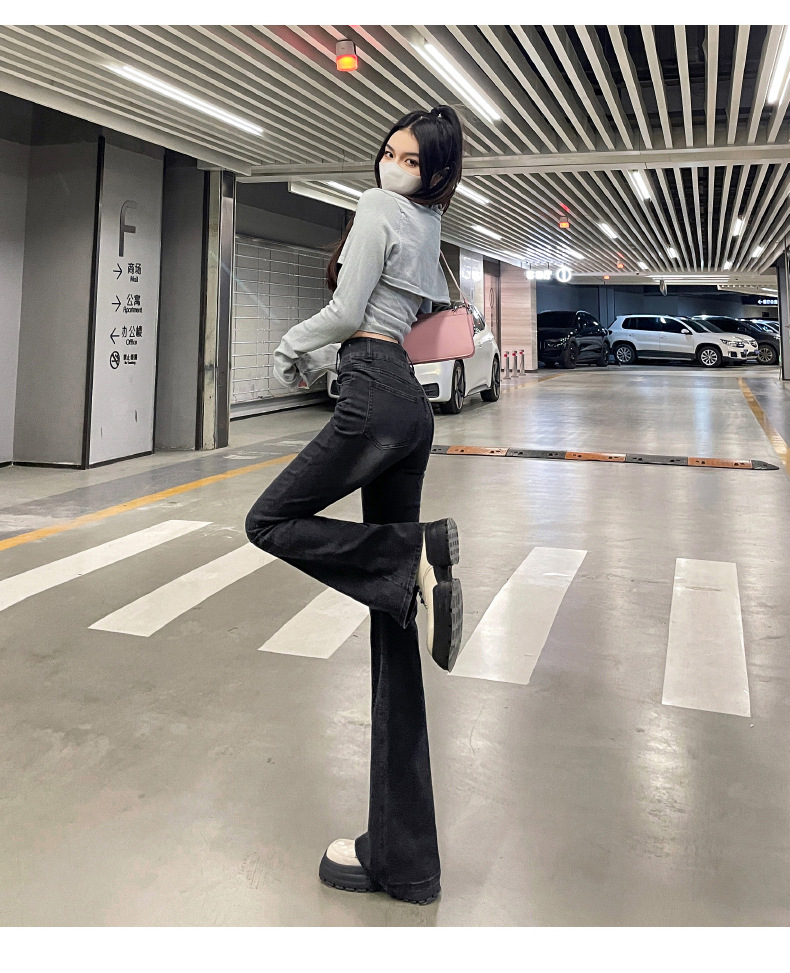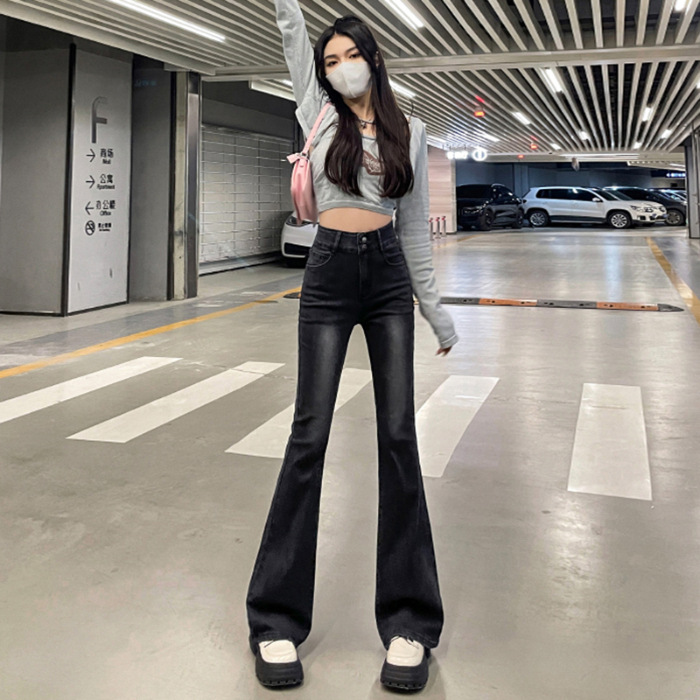 하이웨이스트 부츠컷 청바지 여성용 2026년 봄/가을 신상 슬림핏 신축성 있는 롱 팬츠
