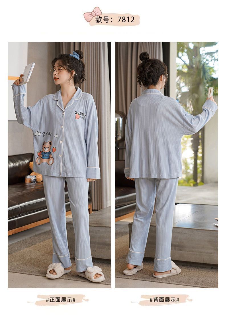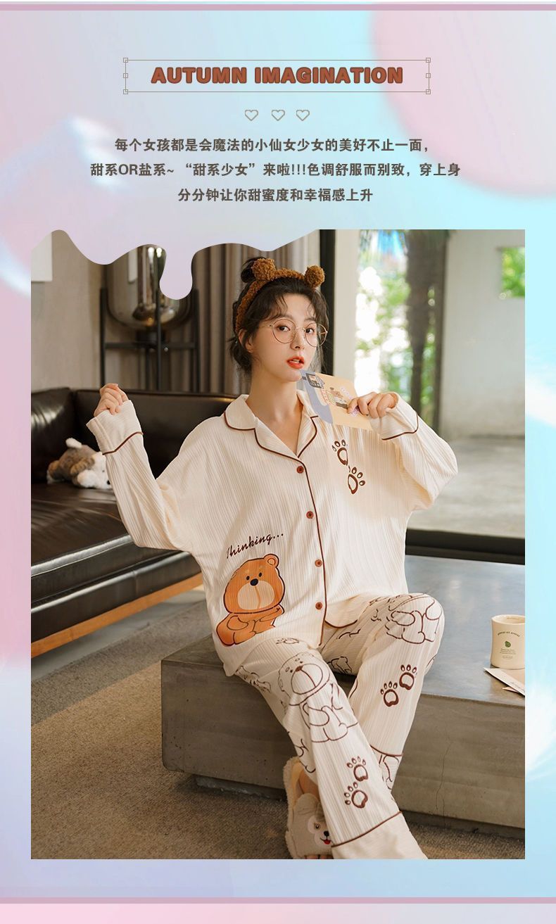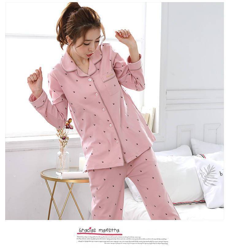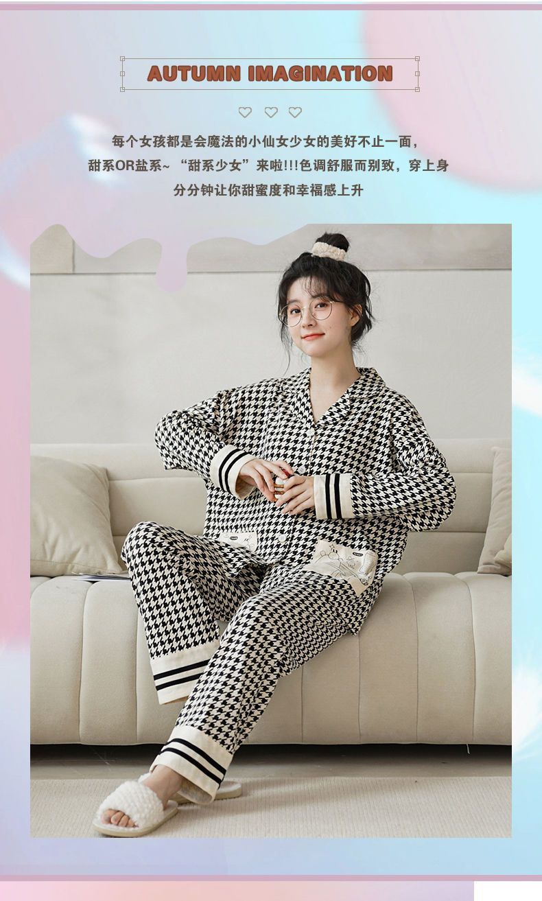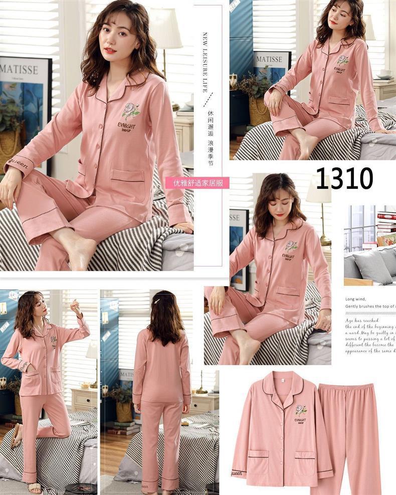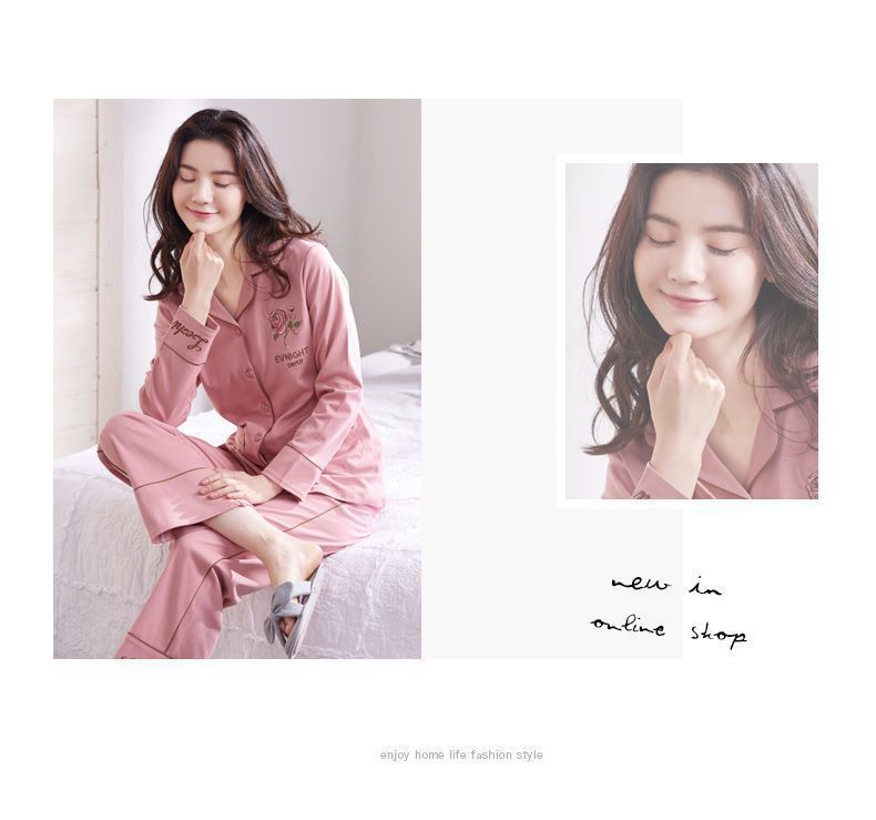 100% 면 잠옷 가슴 패드 여자의 봄과 가을 세트 긴 소매 바지 봄과 가을 얇은 플러스 사이즈 가정 의류스토어 가기