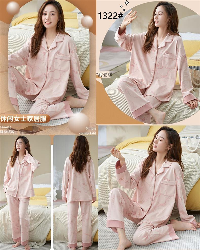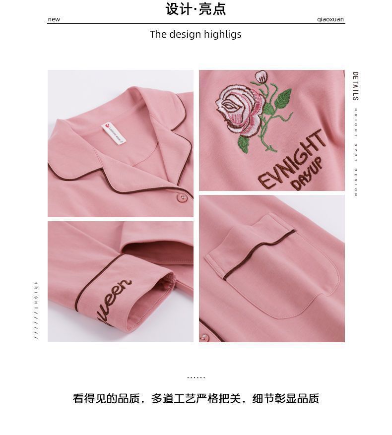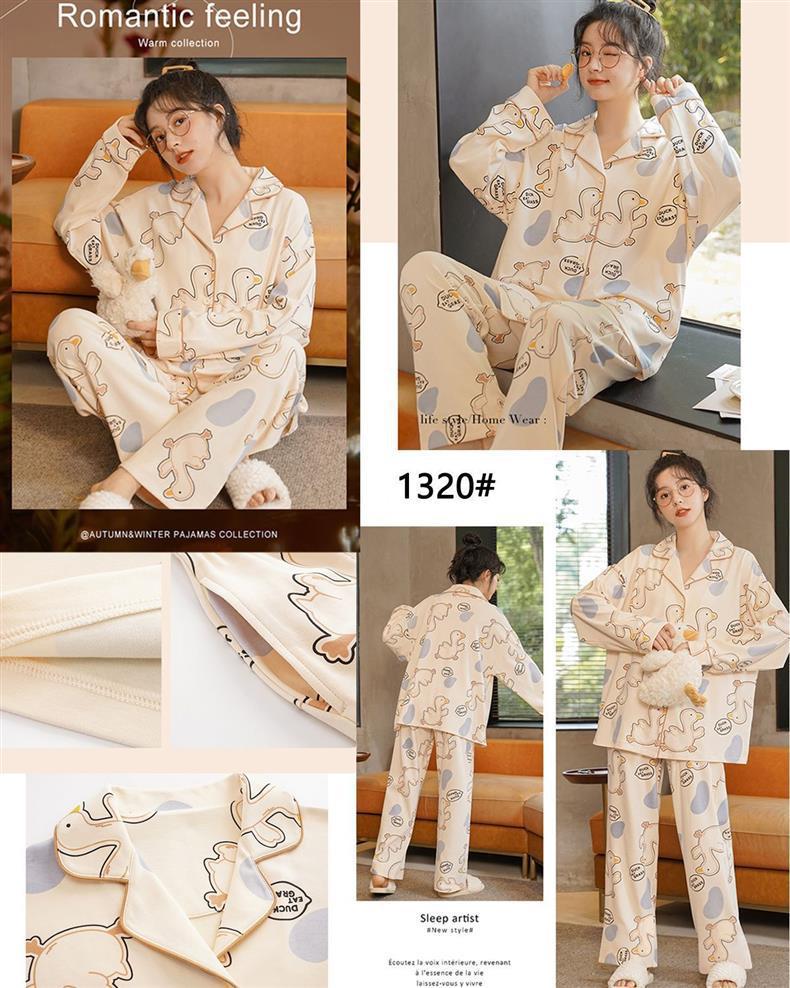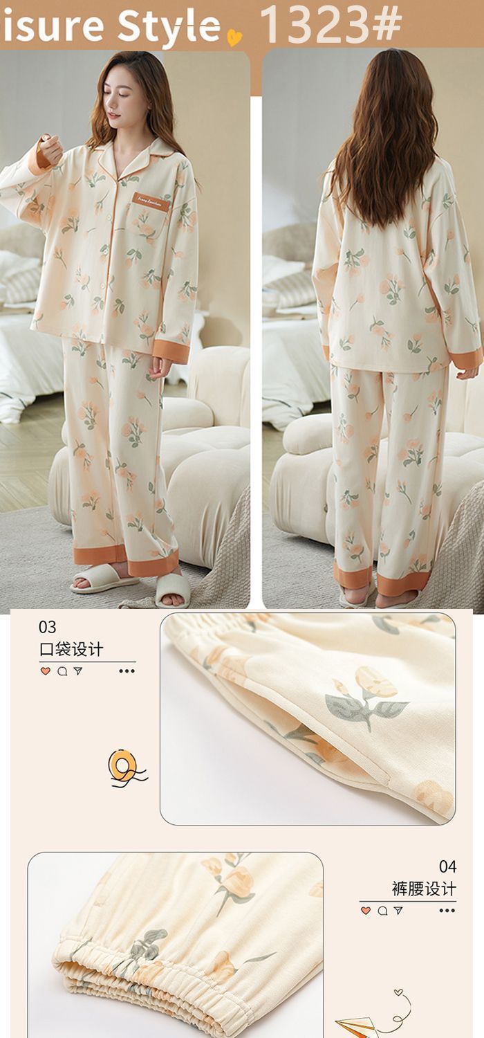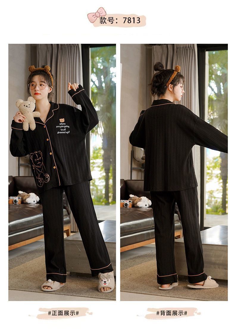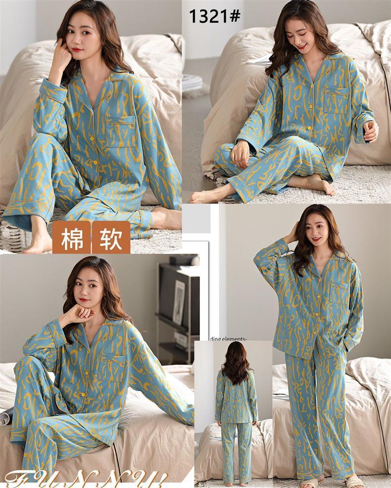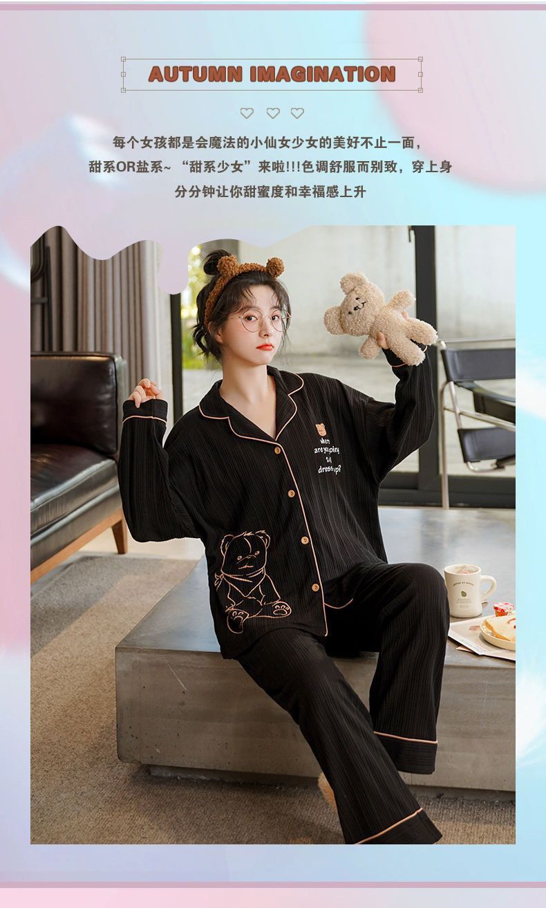100% 면 잠옷 가슴 패드 여자의 봄과 가을 세트 긴 소매 바지 봄과 가을 얇은 플러스 사이즈 가정 의류스토어 가기
