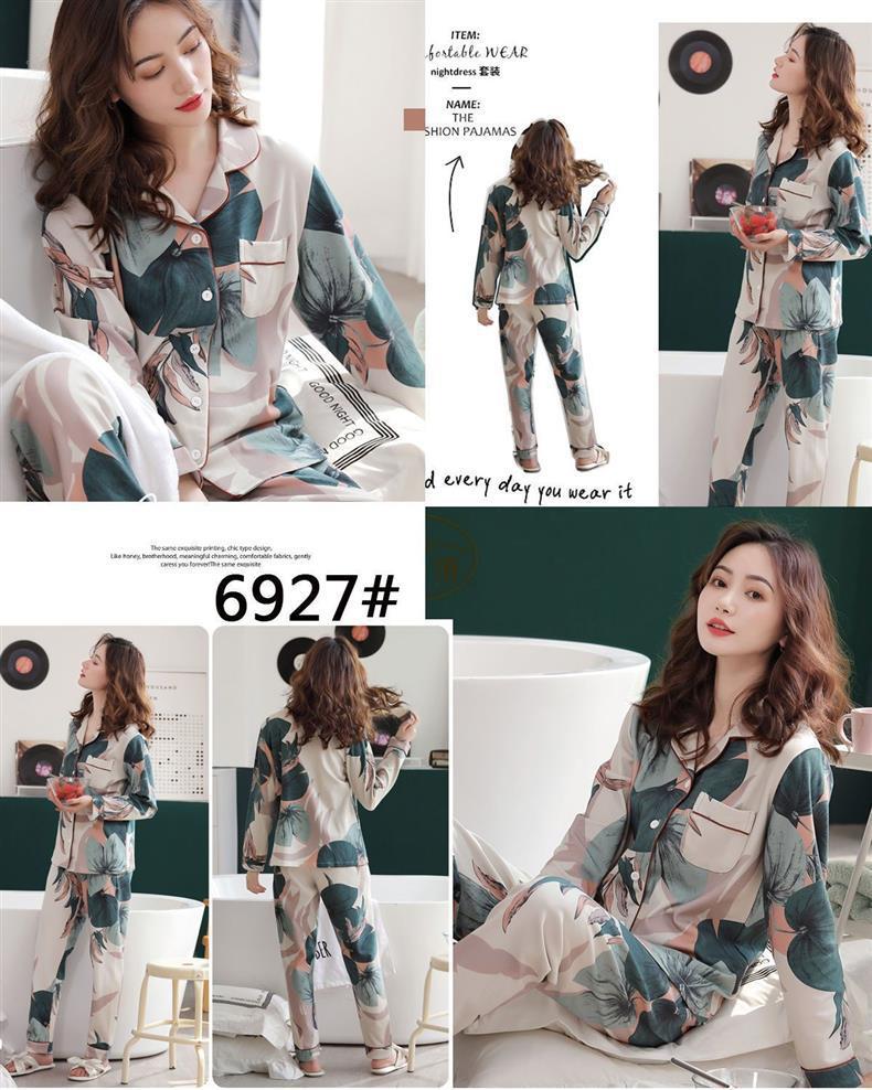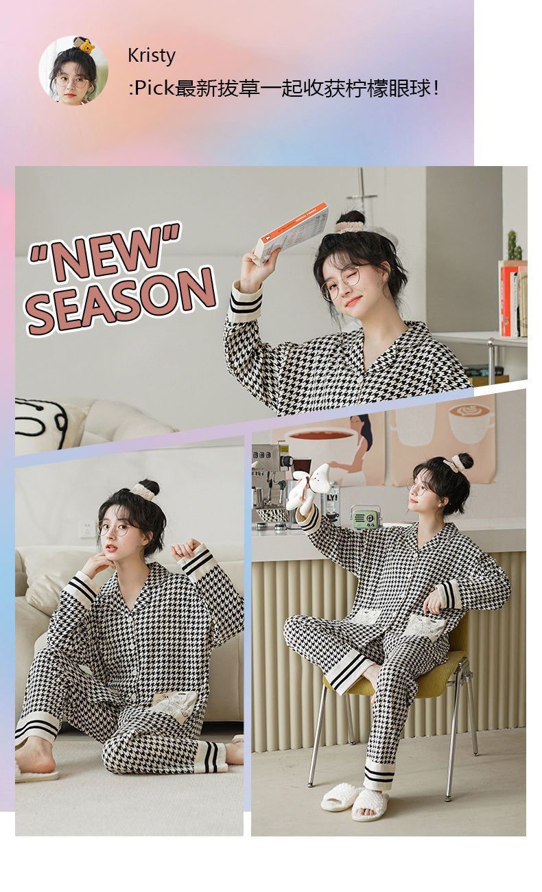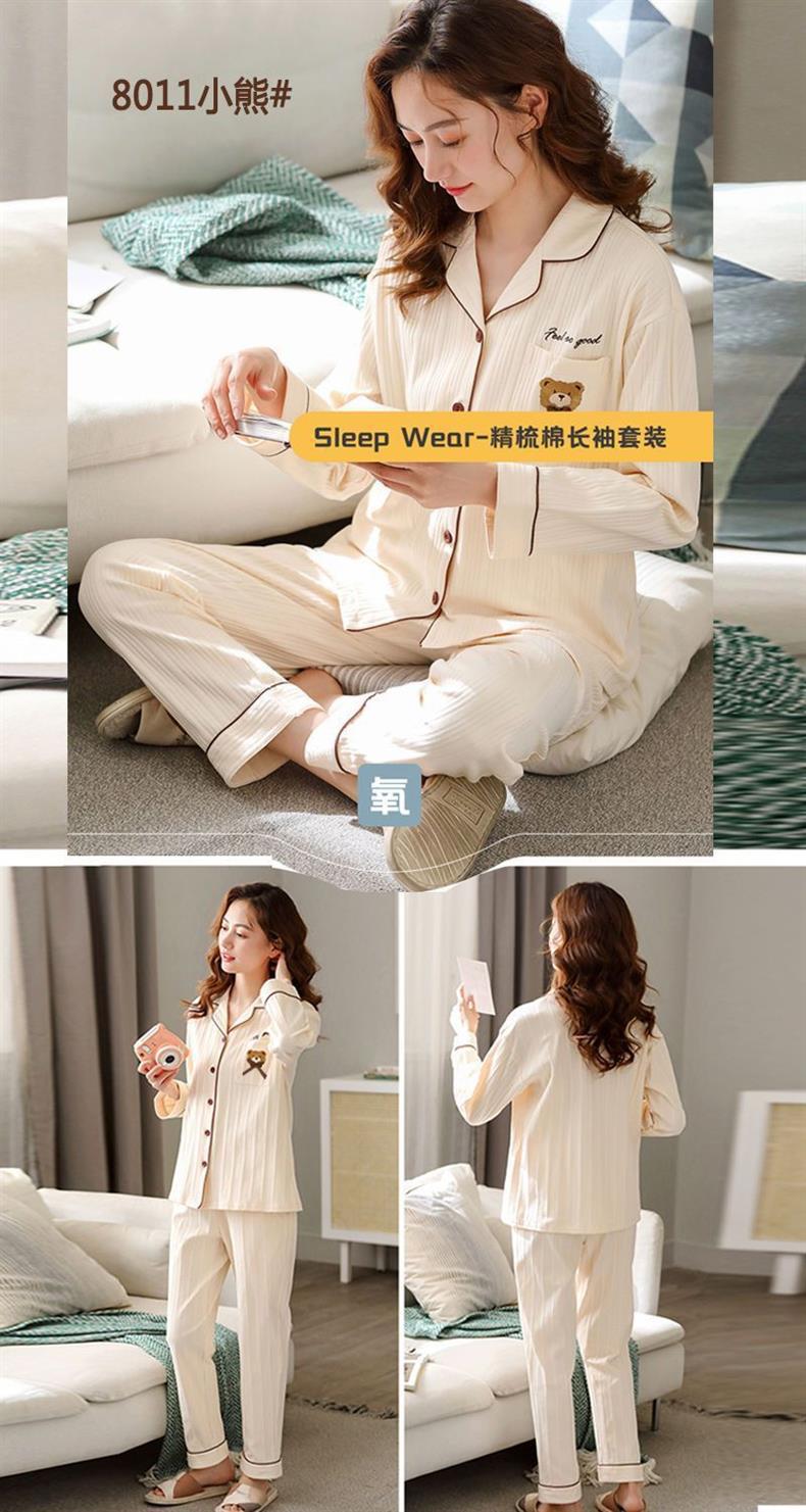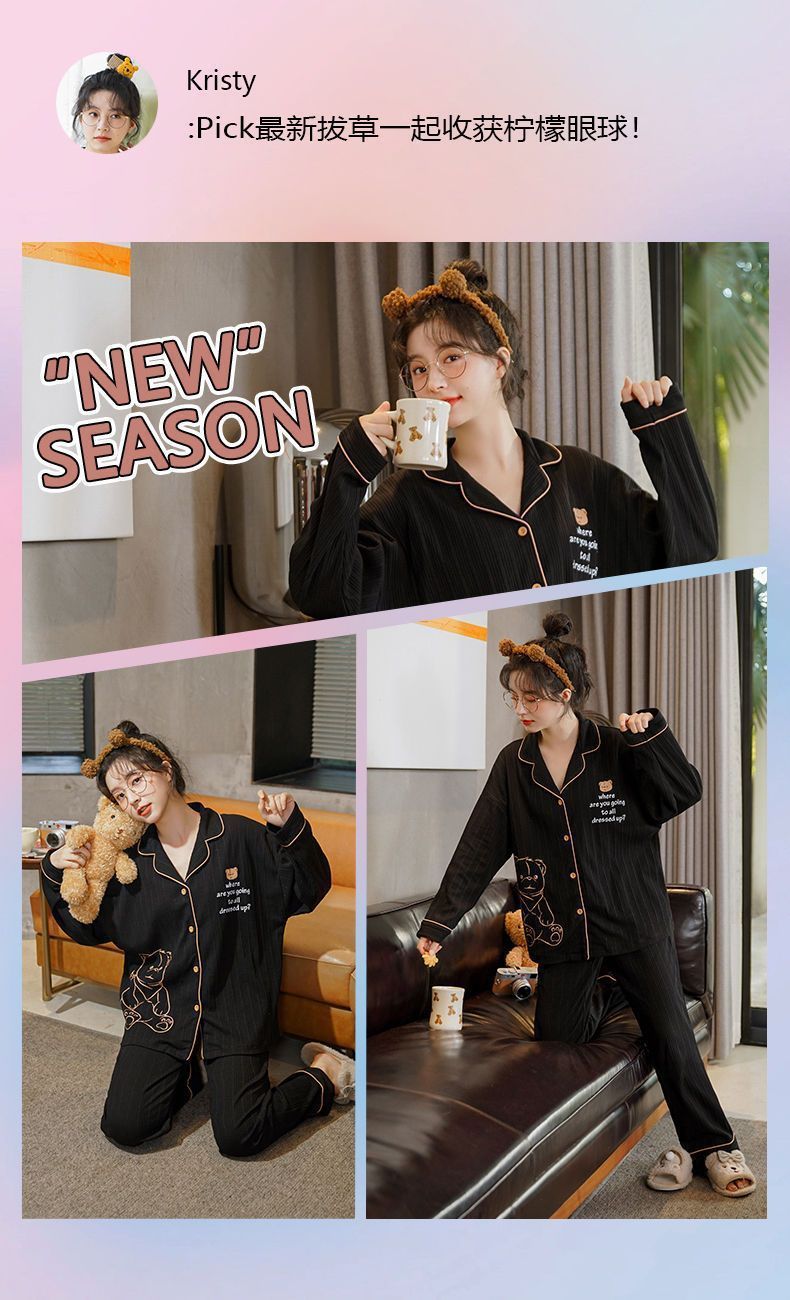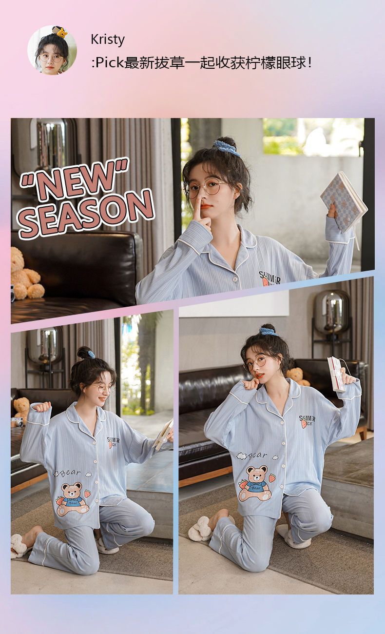 100% 면 잠옷 가슴 패드 여자의 봄과 가을 세트 긴 소매 바지 봄과 가을 얇은 플러스 사이즈 가정 의류스토어 가기