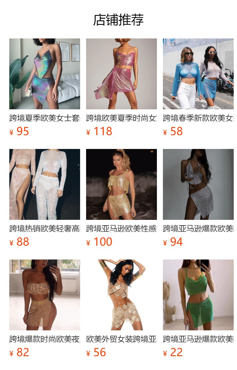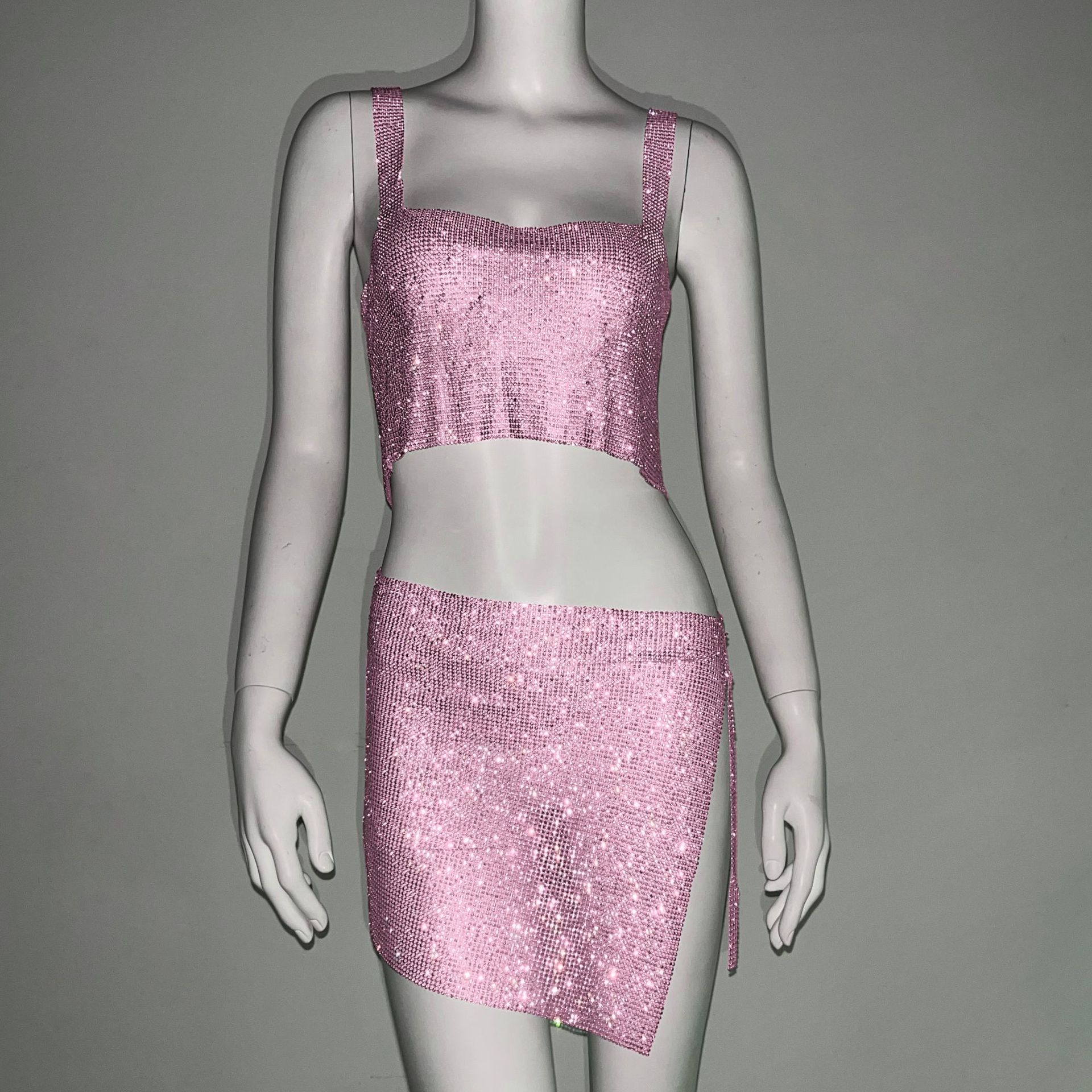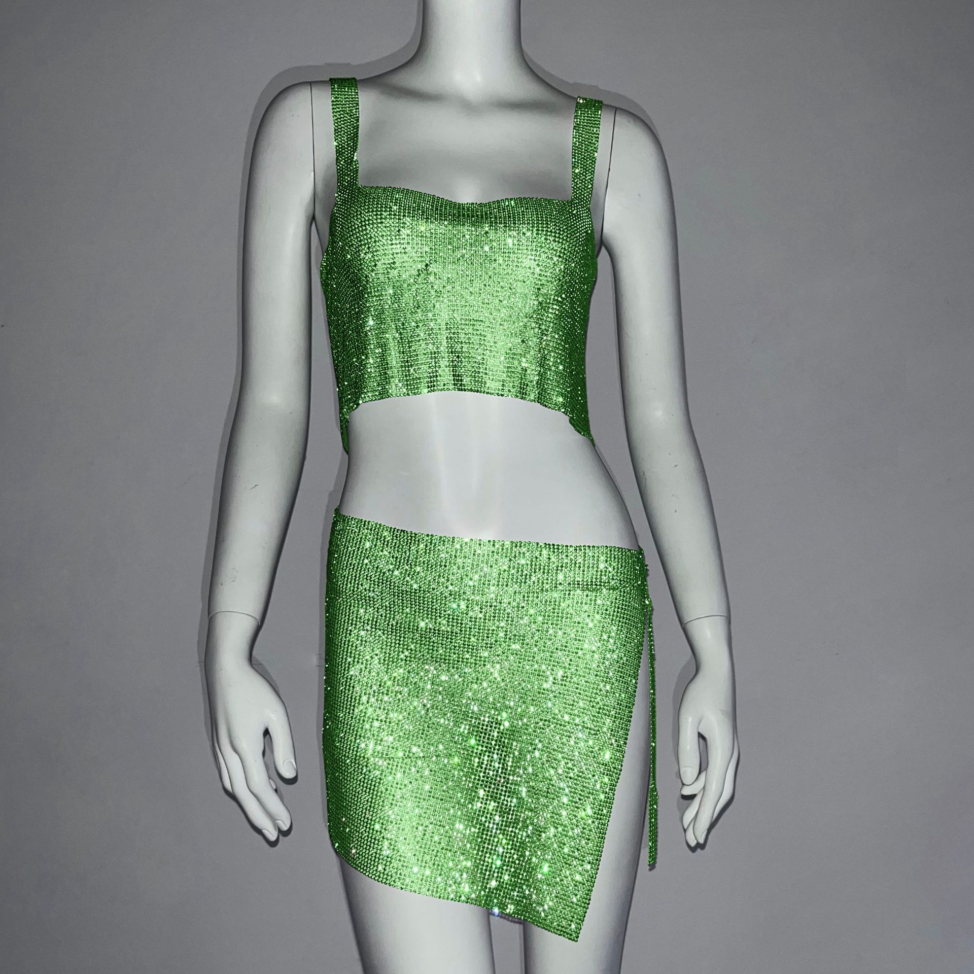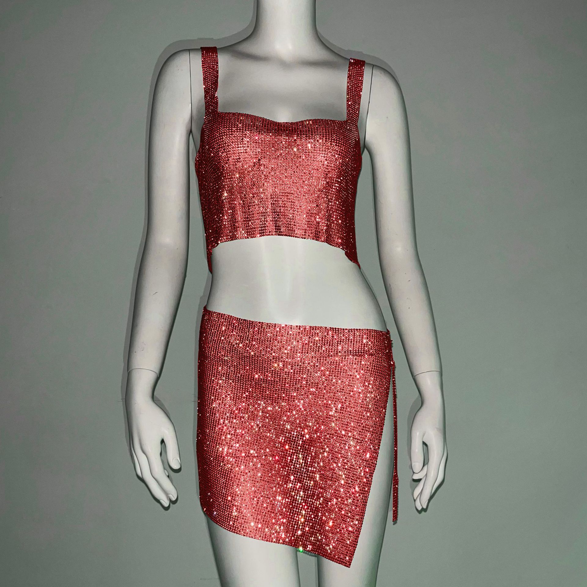 크로스 국경 아마존 유럽과 미국 섹시한 여자의 나이트 클럽 향신료 소녀 라인 석 금속 스트랩 스커트 세트 유행 조끼 여성스토어 가기