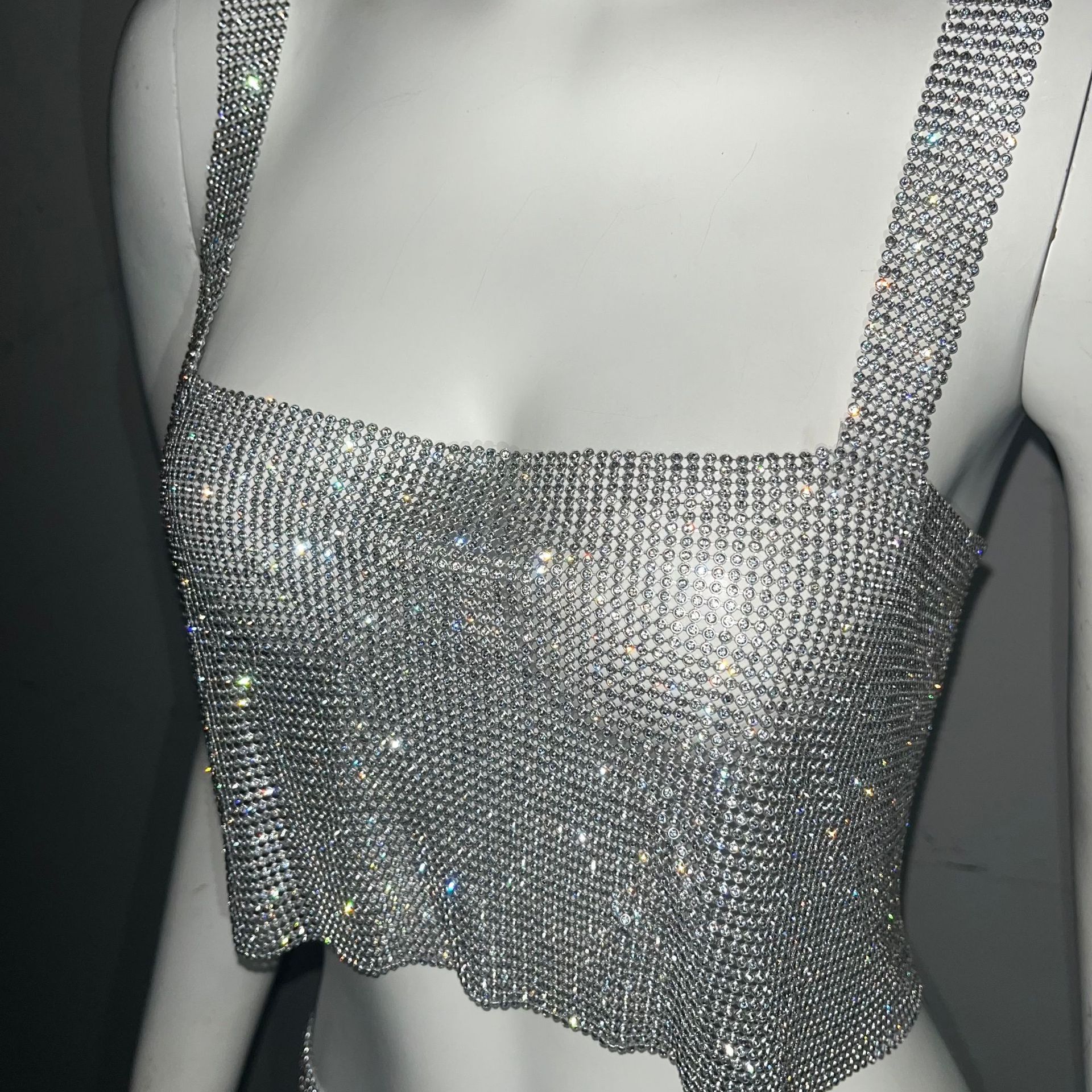 크로스 국경 아마존 유럽과 미국 섹시한 여자의 나이트 클럽 향신료 소녀 라인 석 금속 스트랩 스커트 세트 유행 조끼 여성