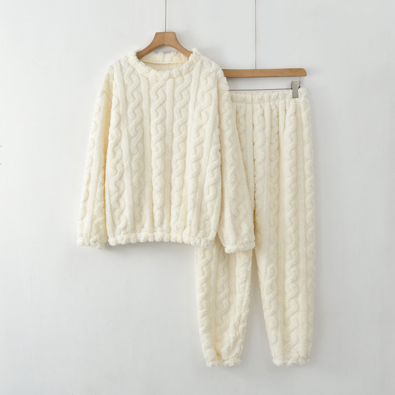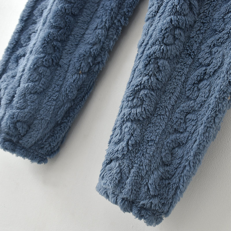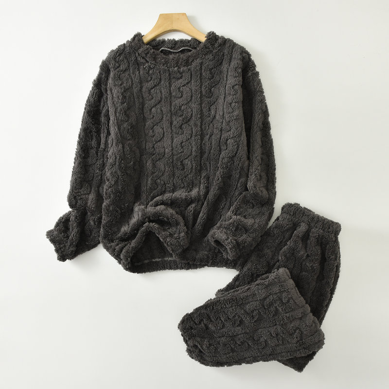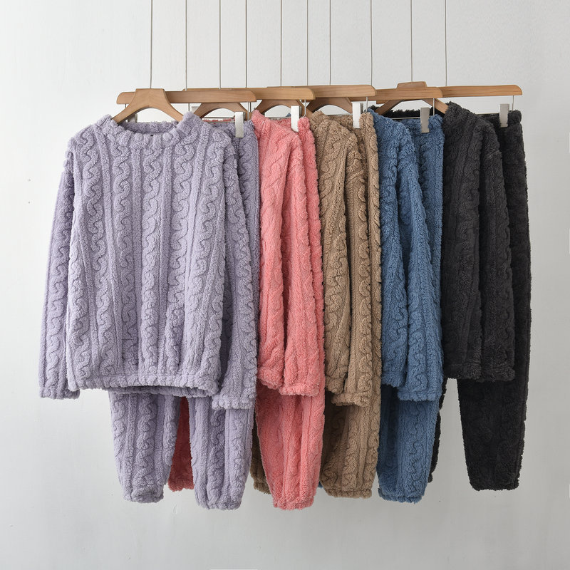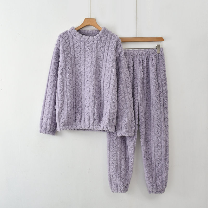 가을과 겨울 기모 두꺼운 긴팔 바지 자카드 가정 옷 캐주얼 느슨한 플러스 사이즈 따뜻한 잠옷 투피스 세트