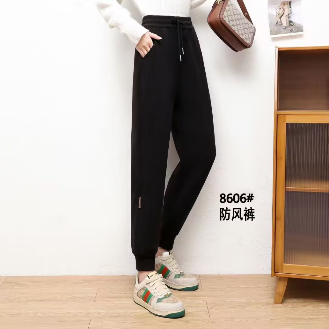 새로운 고급 여성용 바지 느슨한 9 등급 방풍 바지 가을과 겨울 기모 두꺼운 스포츠 발목 바지 겨울 여성 바지