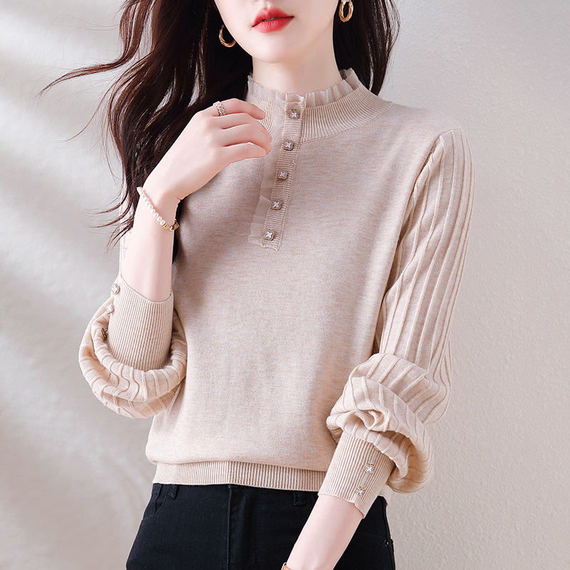 리얼 샷 하프 터틀넥 풀오버 니트웨어 여성용 2023 년 새로운 가을 착용 베이스 셔츠 탑 우아한 스웨터