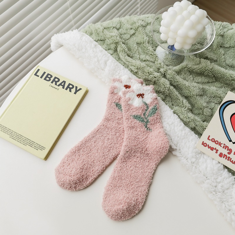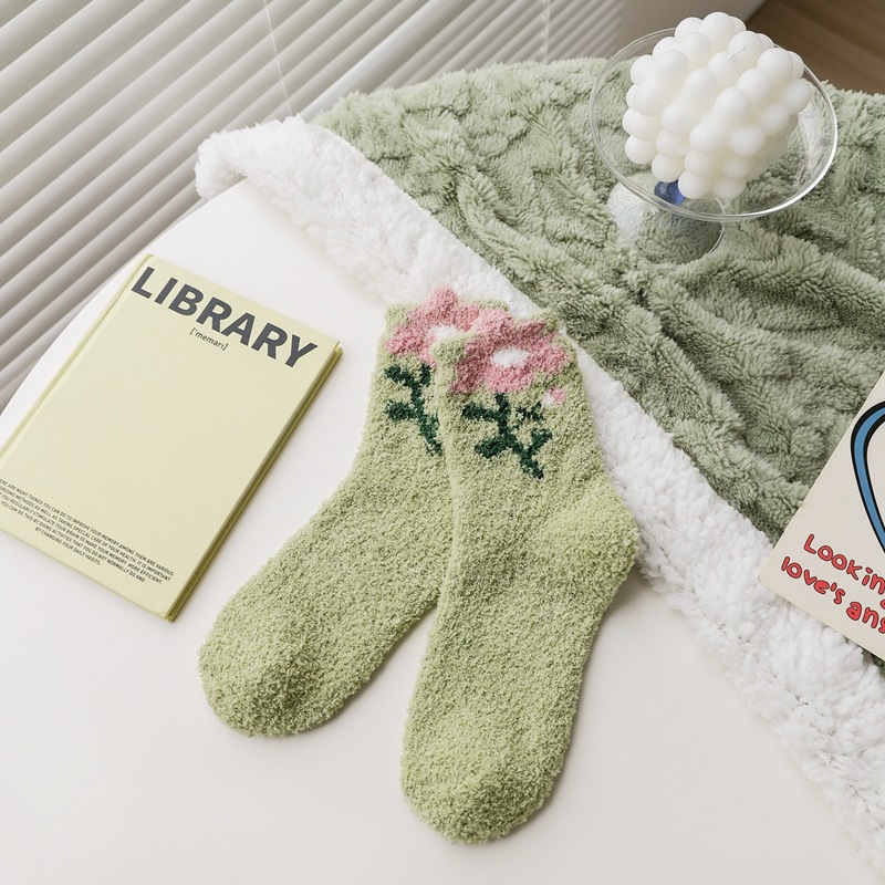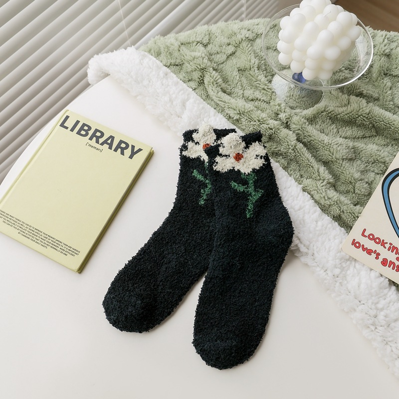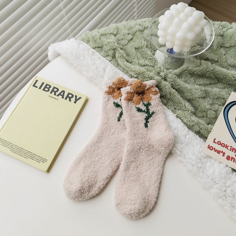 산호 벨벳 양말 여자의 3 차원 꽃 겨울 기모 두꺼운 수면 임산부 양말 여자의 바닥 스타킹 유행스토어 가기