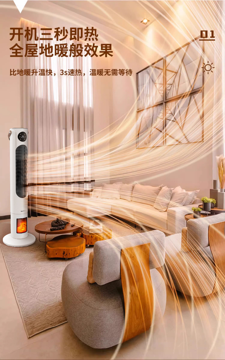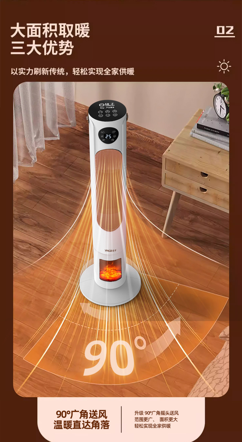 양쯔 난방기 온풍기 전기 난방기 가정용 에너지 절약형 열풍기 소형 태양열 타워형 스탠드형 광각
