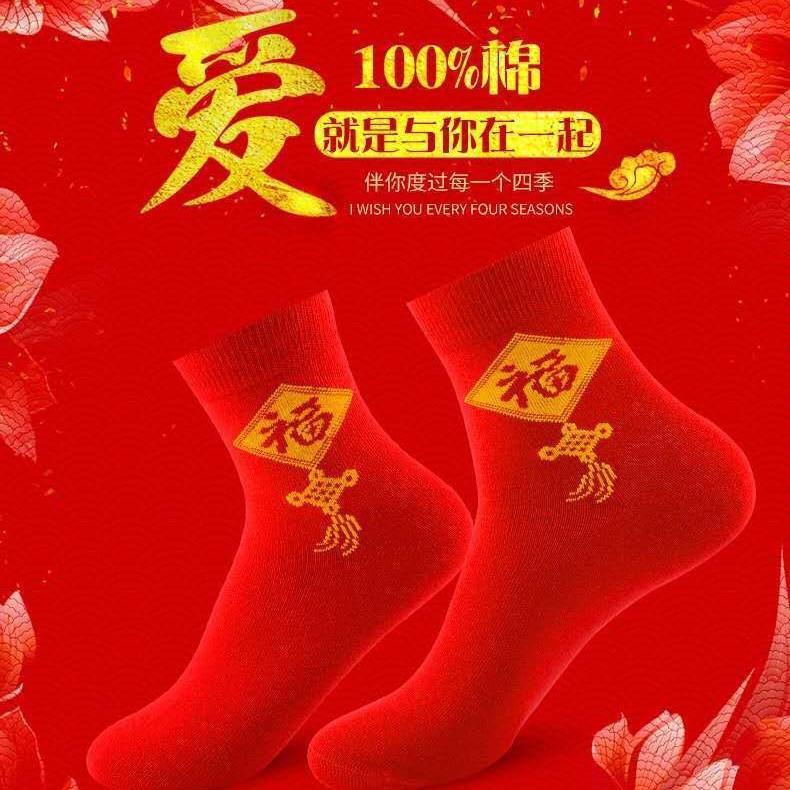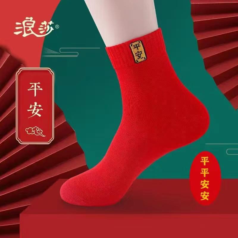 Langsha Dragon Year 빨간색 양말 남성과 여성의 결혼식 축제 순면 양말 여성의 빨간색 양말 남성 가을과 겨울 조디악 양말스토어 가기