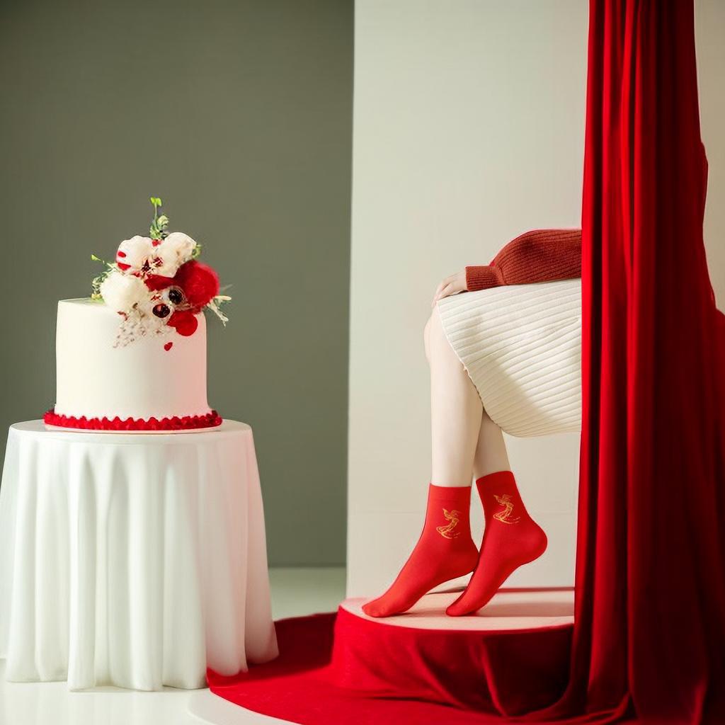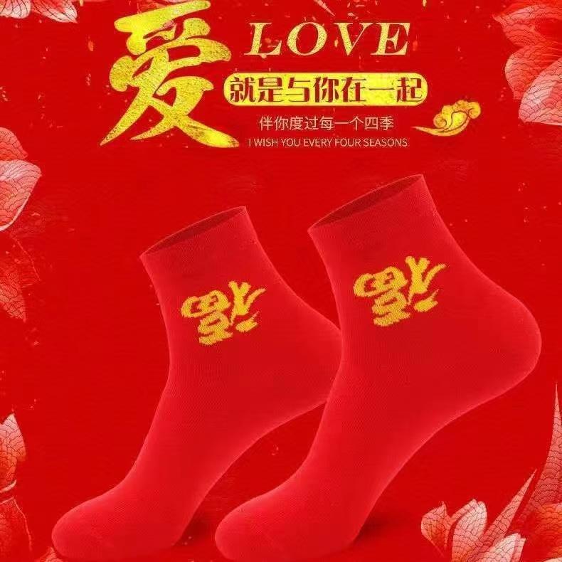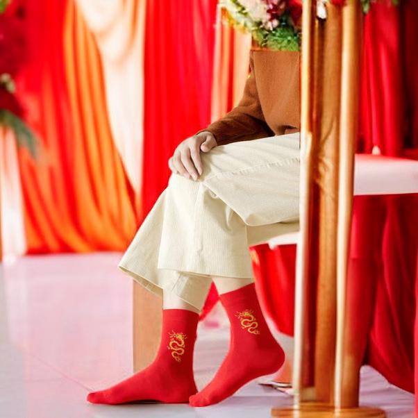 Langsha Dragon Year 빨간색 양말 남성과 여성의 결혼식 축제 순면 양말 여성의 빨간색 양말 남성 가을과 겨울 조디악 양말