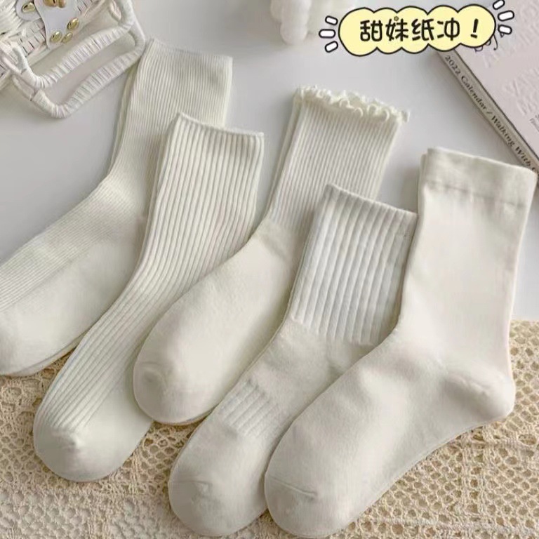 흰색 말뚝 양말 어린이 미드 튜브 양말 가을과 겨울 jk 메리 제인 우드 이어 에지 봄과 가을 뼈없는 달 스타킹스토어 가기