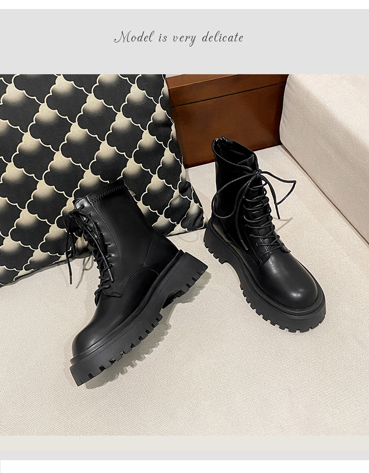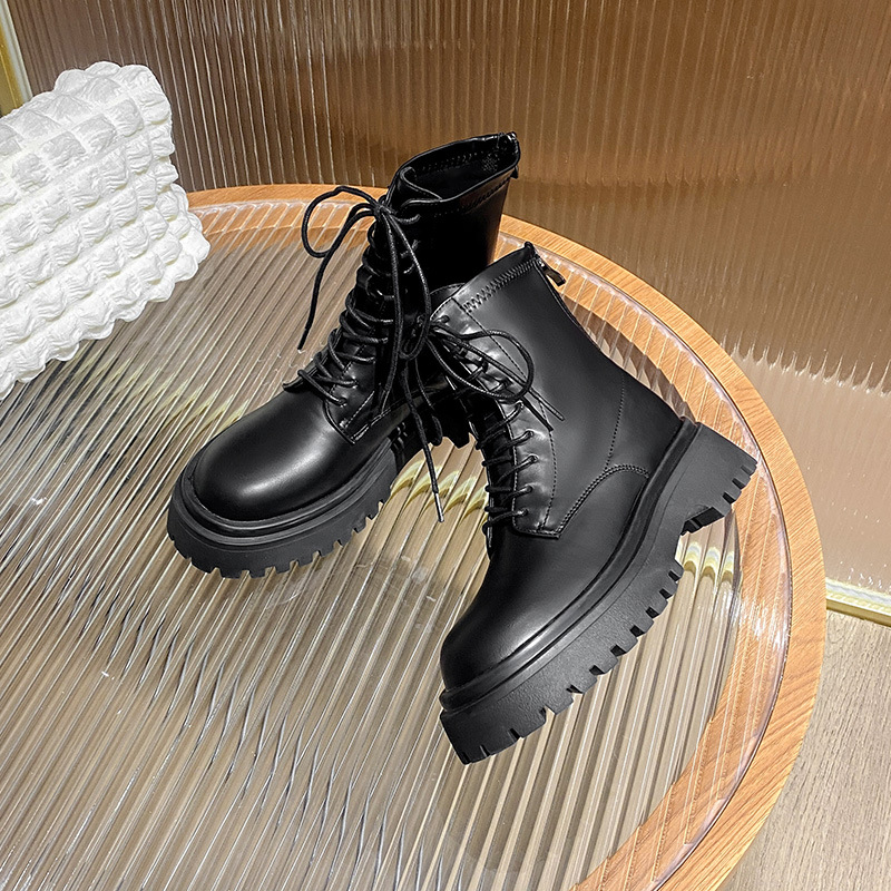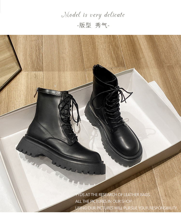 [매치하지 않기 위해 판매] 작은 마틴 부츠 여자 싱글 부츠 두꺼운 하단 짧은 부츠 블랙 부츠 여성의 가을 겨울