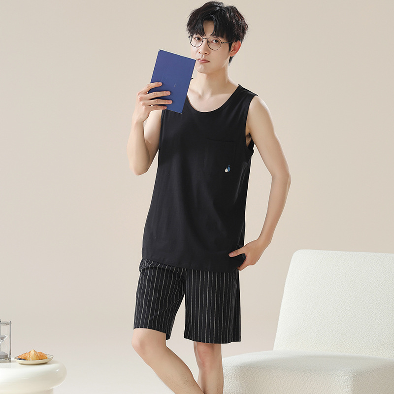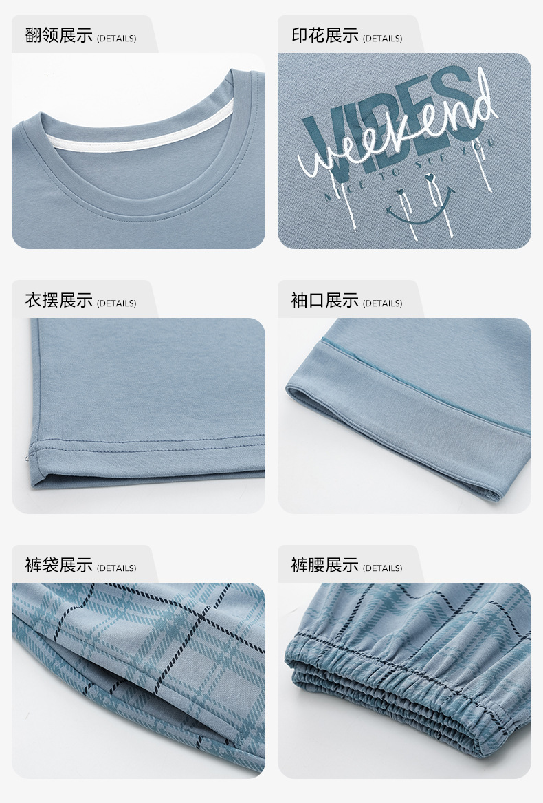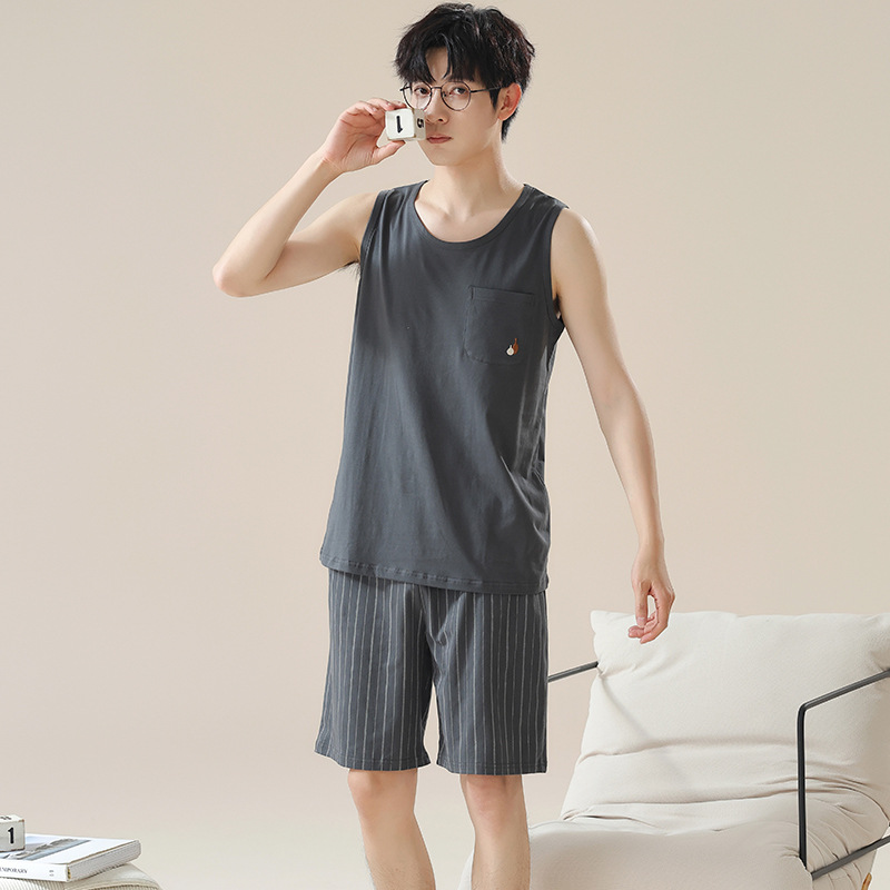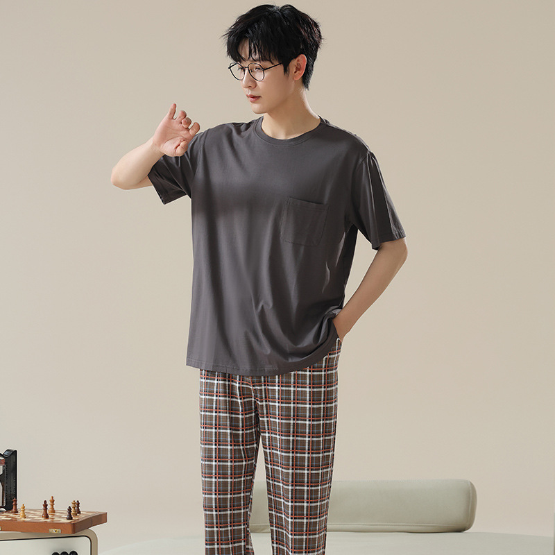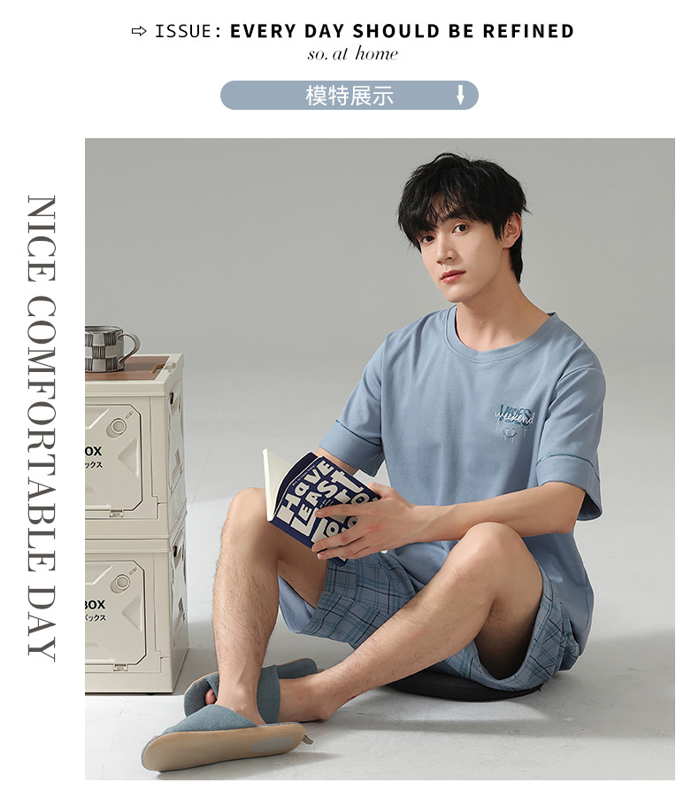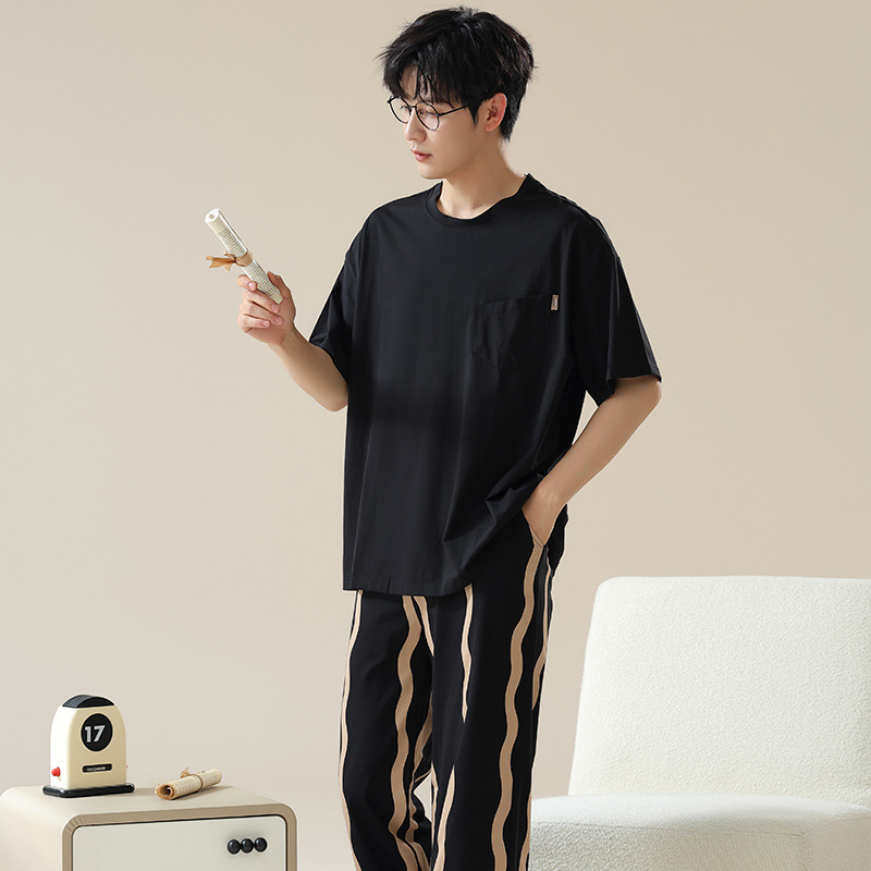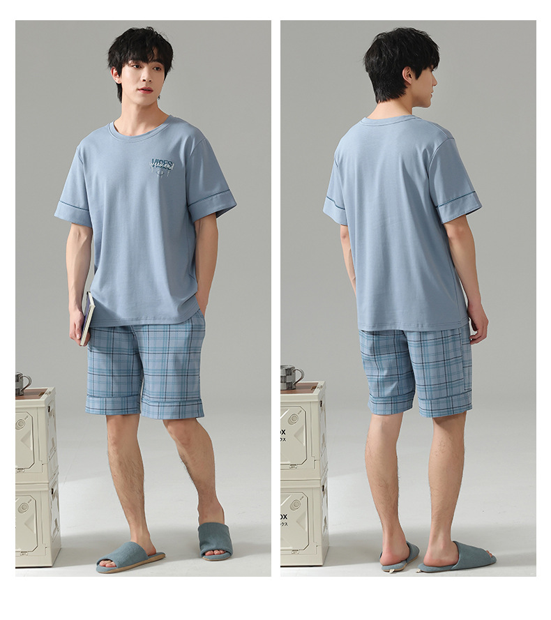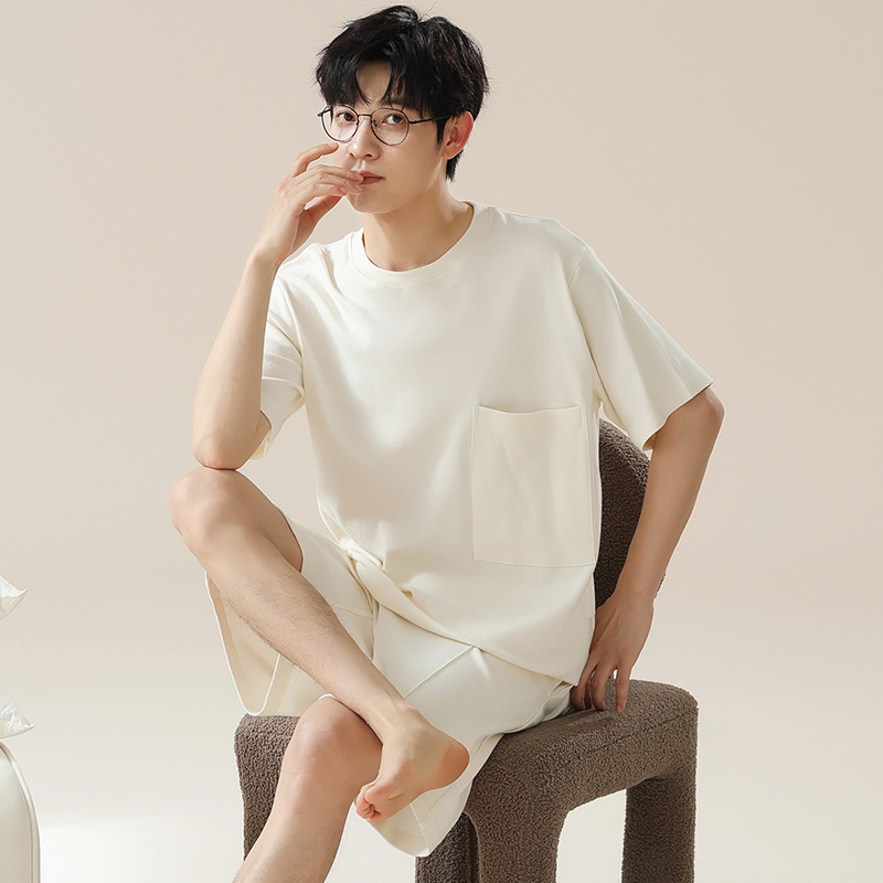 6535 면 유행 반팔 반바지 세트 잠옷 남성 여름 새로운 부드러운 얇은 느슨한 외부 착용 홈 의류스토어 가기