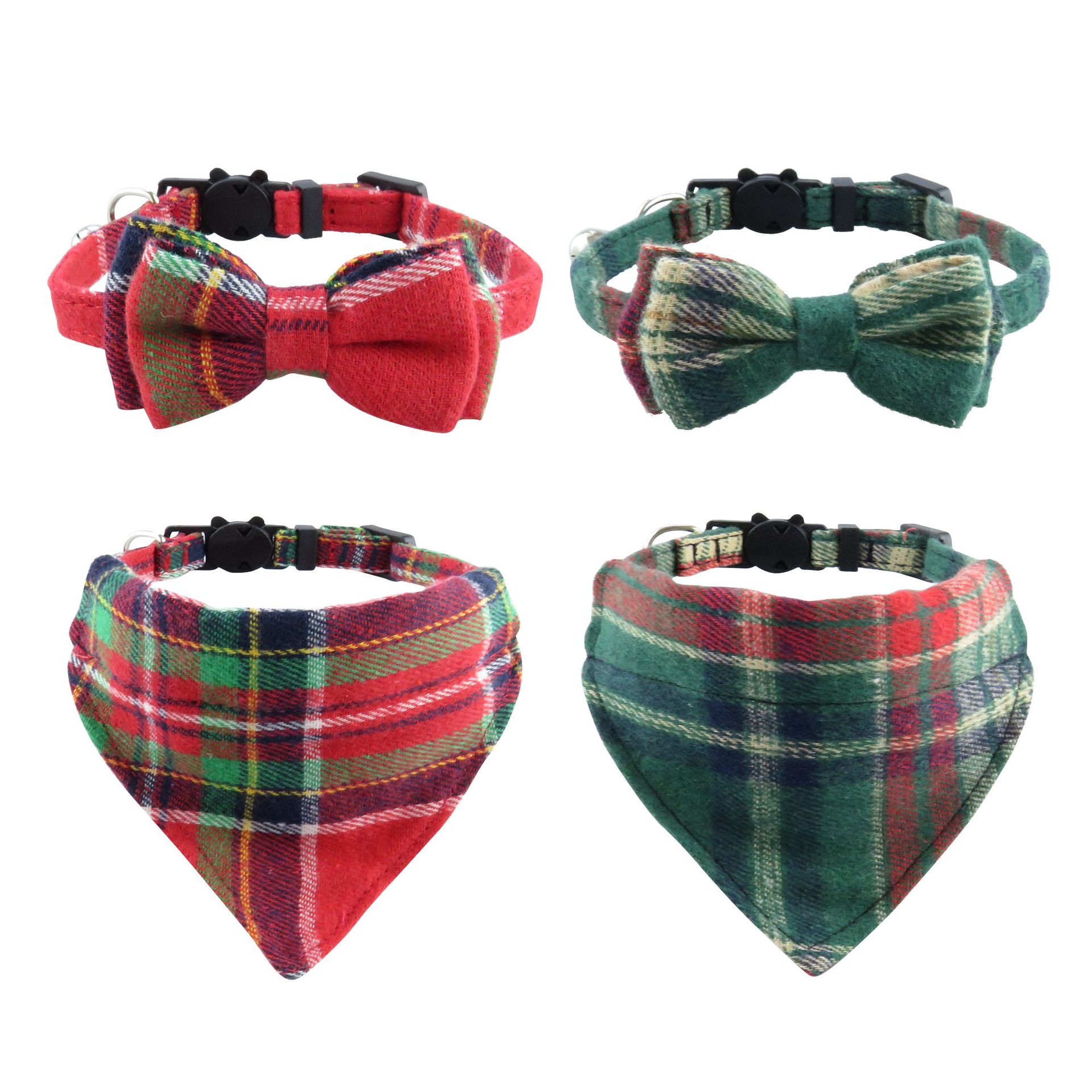 새로운 애완 동물 고양이 목걸이 투피스 세트 크리스마스 고양이 활 칼라 삼각형 수건 스카프