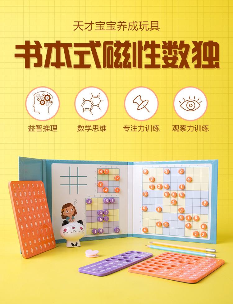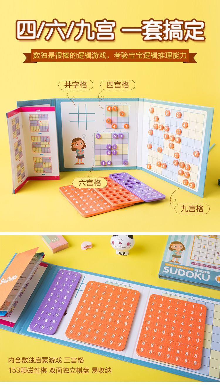어린이 퍼즐 4 대 1 마그네틱 9 평방 스도쿠 게임 체스 아기 조기 교육 사고 개발 훈련 장난감스토어 가기