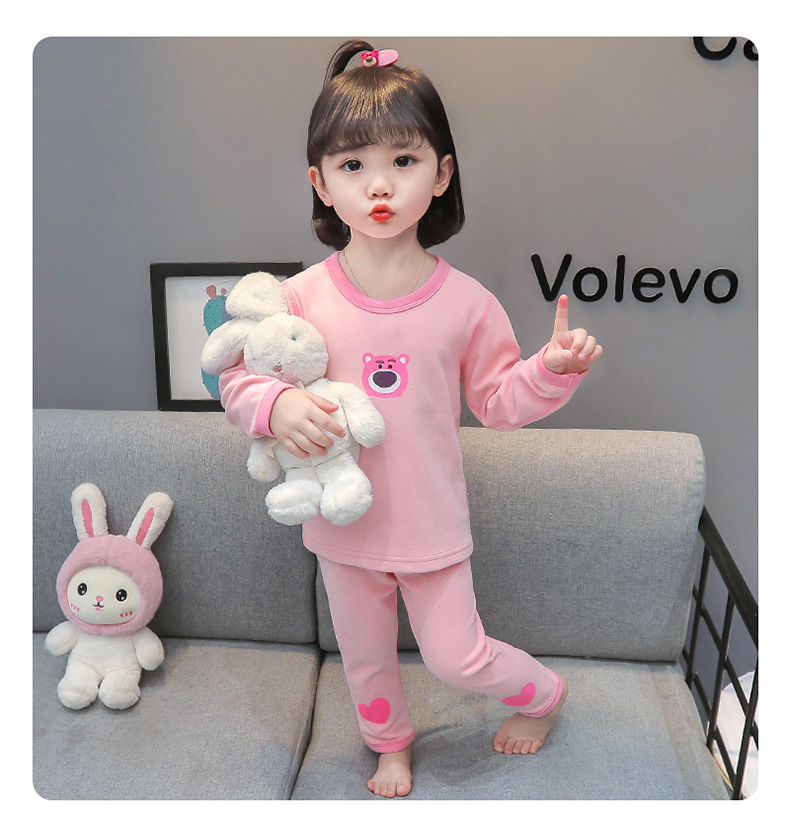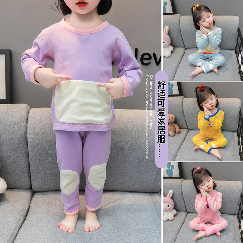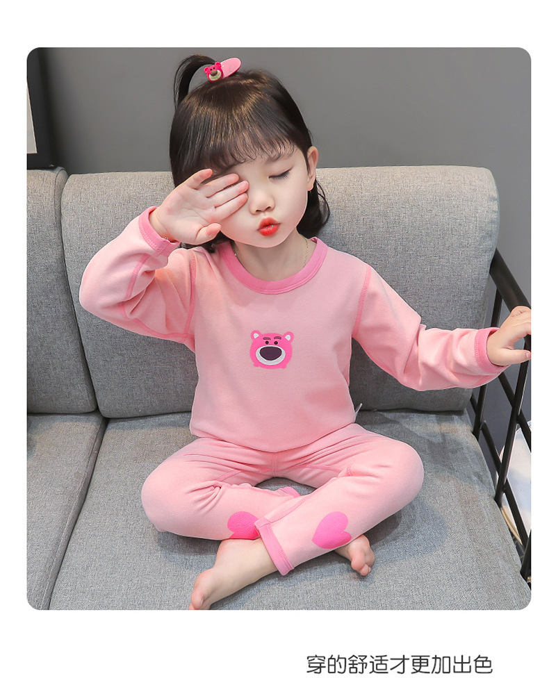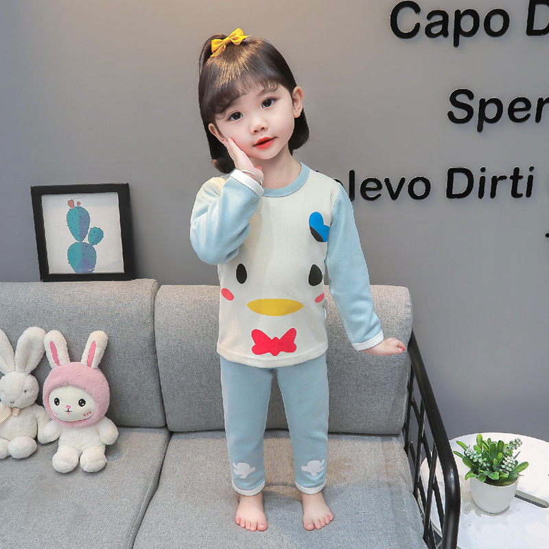 어린이 벨벳 열 속옷 세트 여아 기모 새로운 가을 바지 잠옷 아기 가을과 겨울 긴 소매 가정 옷스토어 가기