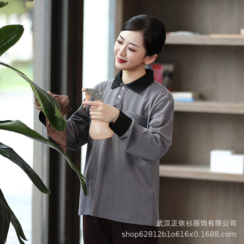 청소 작업복 긴 소매 티셔츠 가을과 겨울 여성과 남성 재산 호텔 객실 청소 아줌마 청소 옷스토어 가기