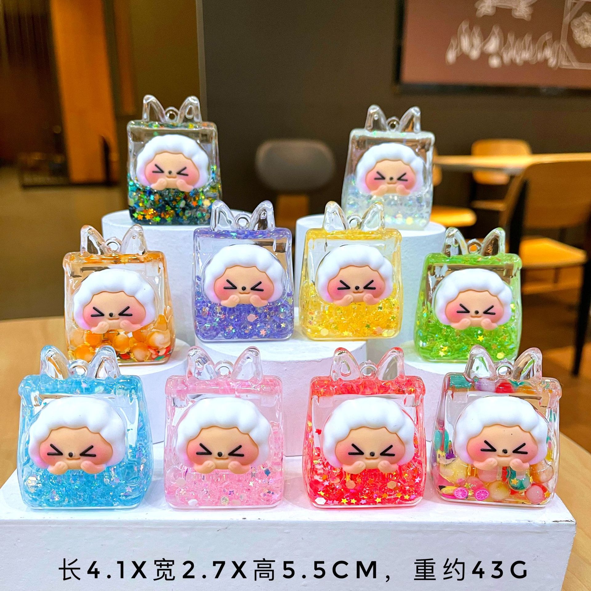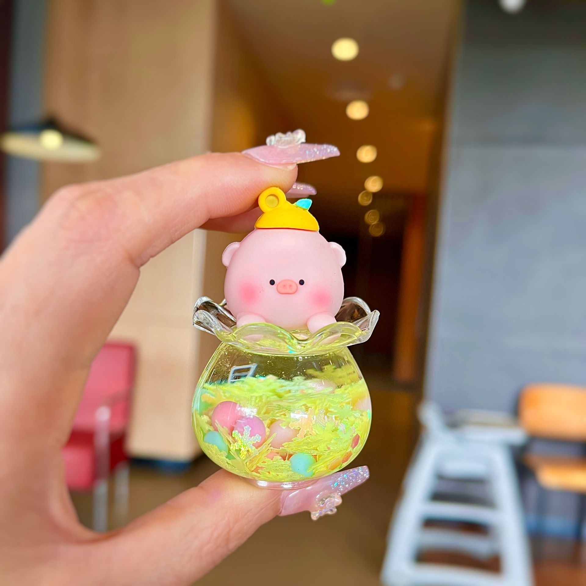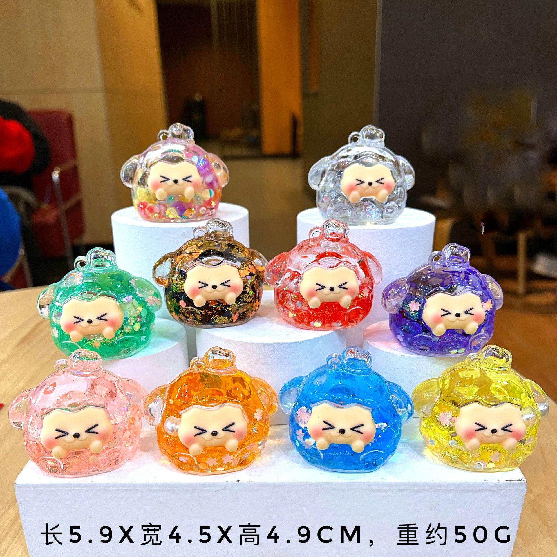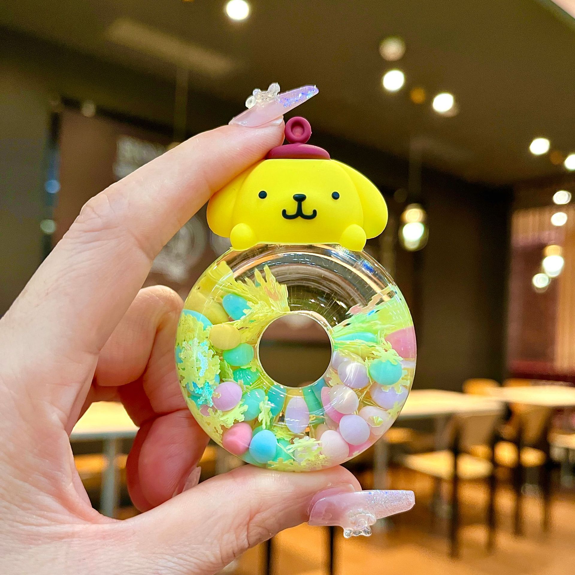 그물 레드 옐로우 오리 도넛 오일을 모래 병 장식품으로 비취 GUI 개 열쇠 고리 만화 작은 펜던트 액세서리 도매