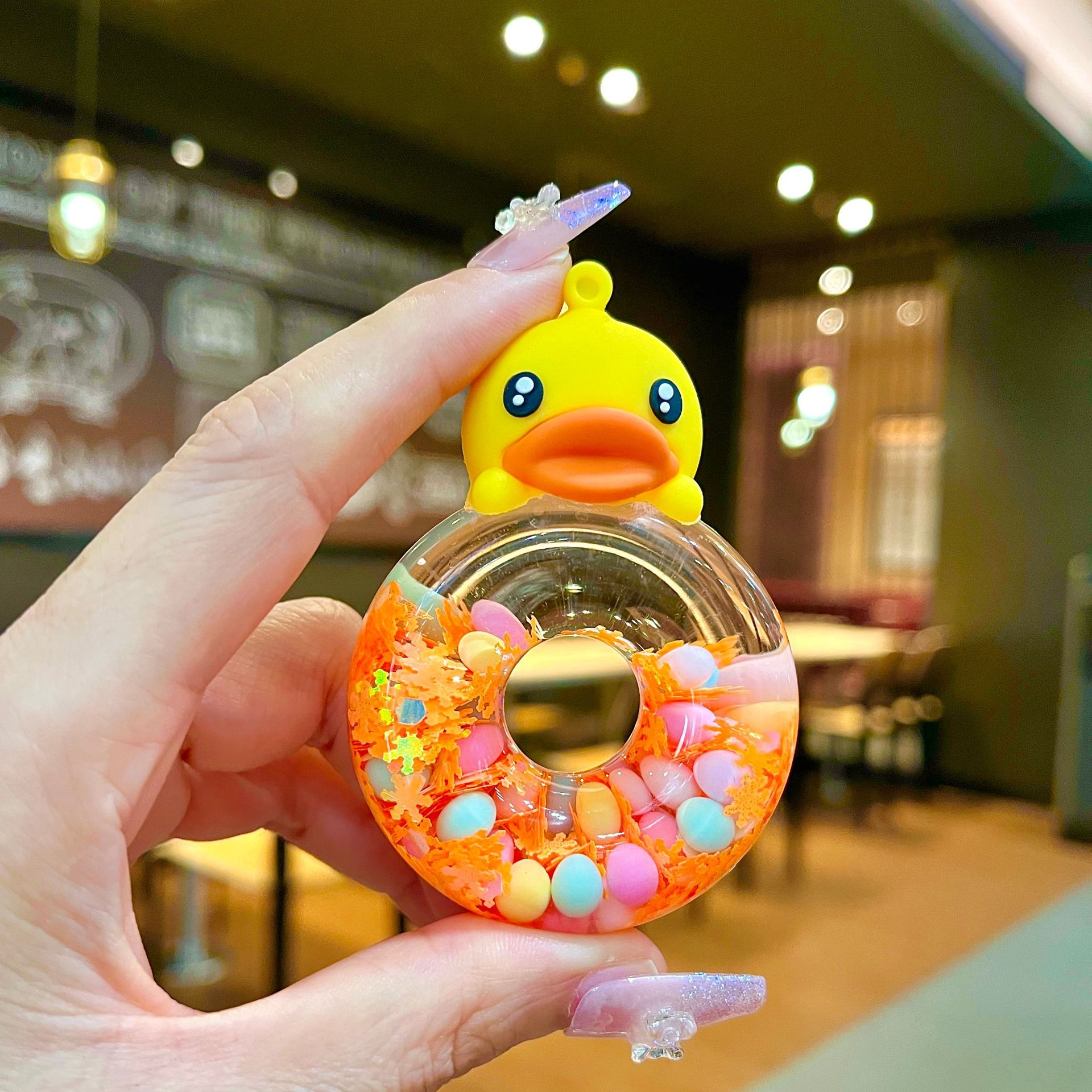 그물 레드 옐로우 오리 도넛 오일을 모래 병 장식품으로 비취 GUI 개 열쇠 고리 만화 작은 펜던트 액세서리 도매스토어 가기