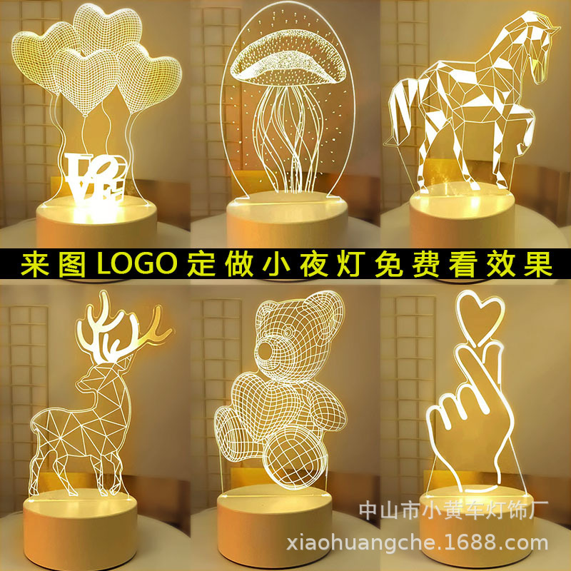 국경 간 3D 야간 조명 선물 회사 광고 휴일 활동 창조적 인 선물 기념품 아크릴 분위기 테이블 램프스토어 가기