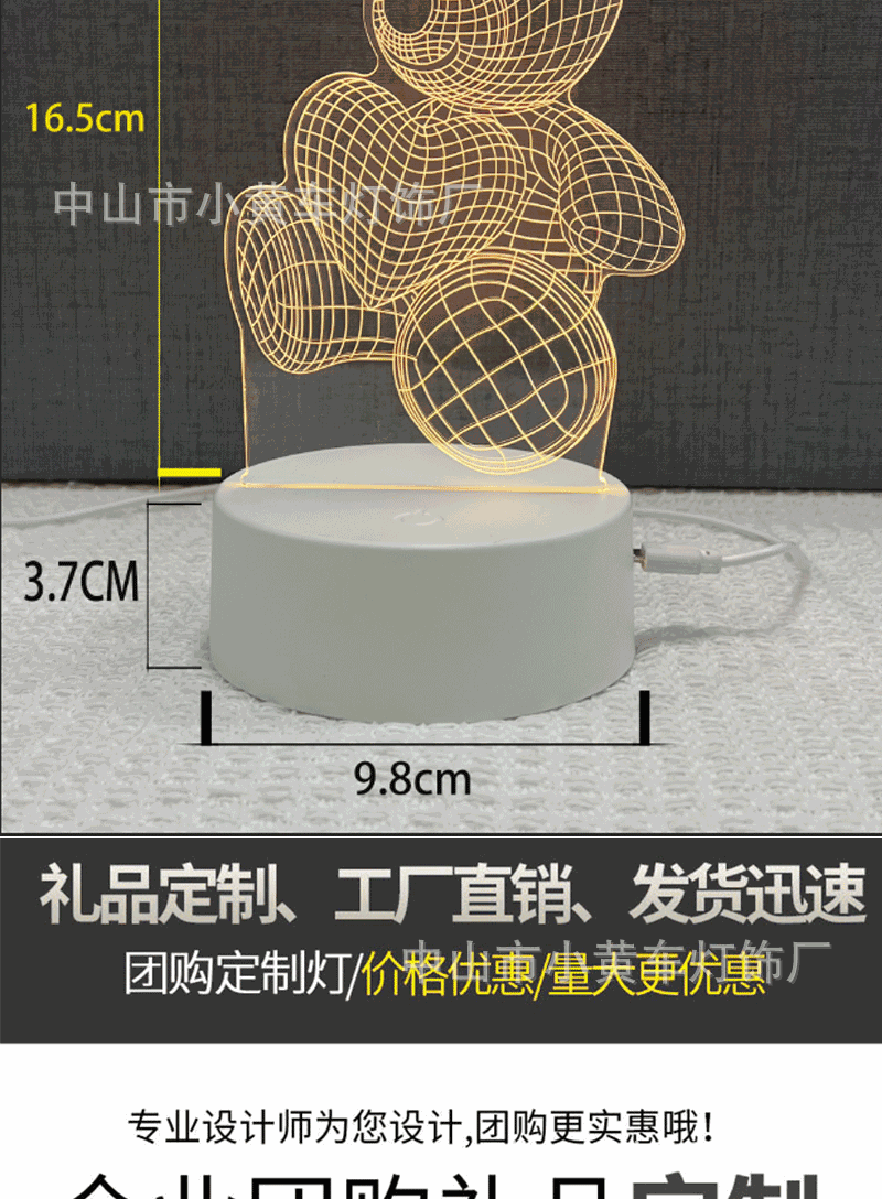 국경 간 3D 야간 조명 선물 회사 광고 휴일 활동 창조적 인 선물 기념품 아크릴 분위기 테이블 램프