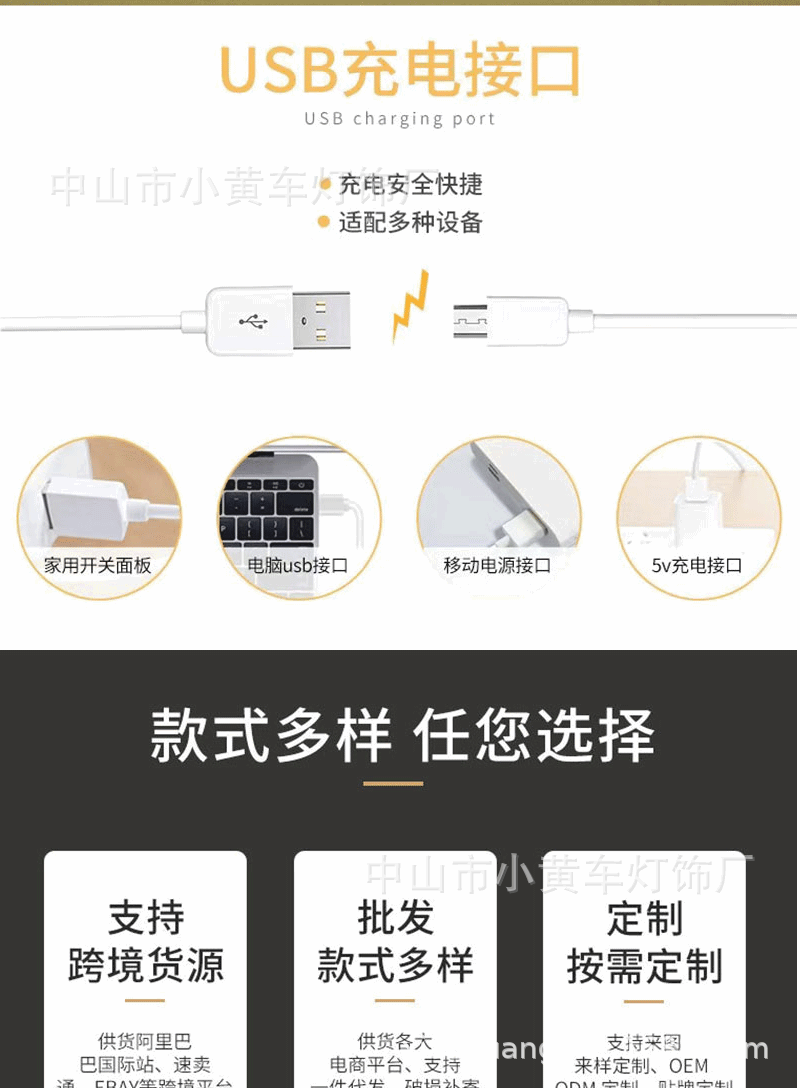 • 3 색 조절 가능한 밝기 USB 플러그인