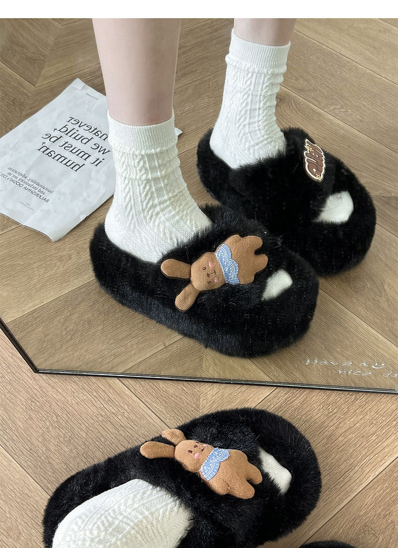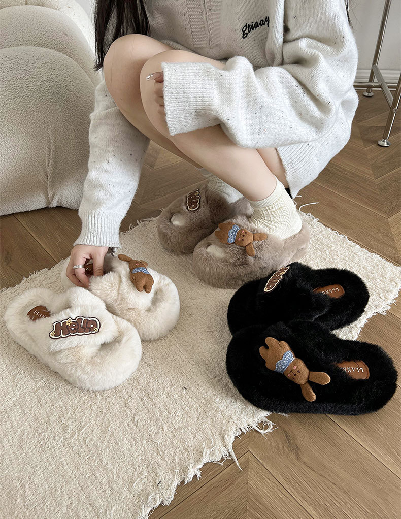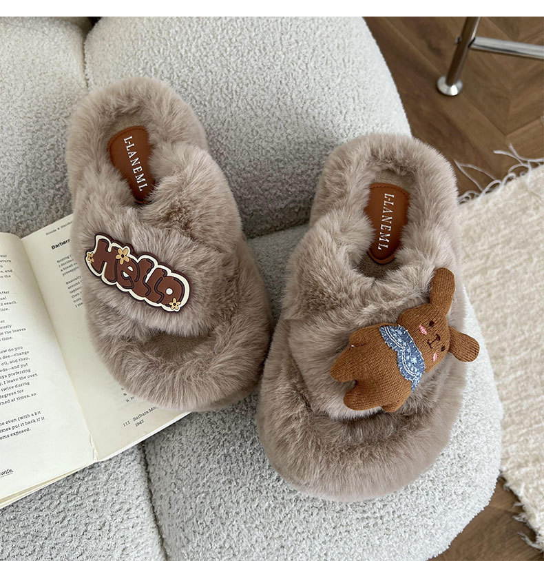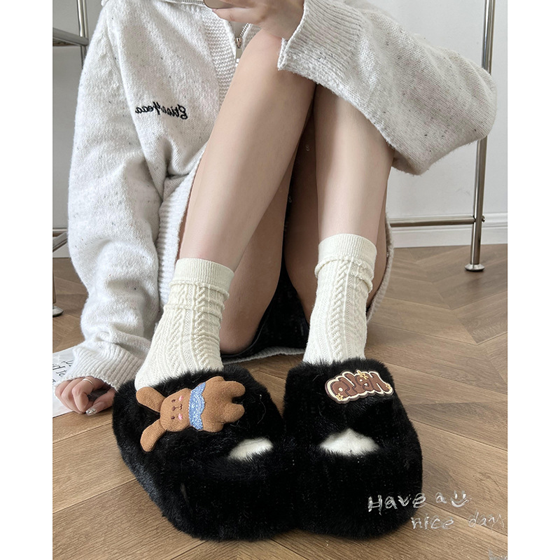 인터넷 연예인 만화 귀여운 높이 증가 두꺼운 바닥 마오 마오 슬리퍼 여성용 2023 새로운 가을과 겨울 크로스 미끄럼 방지 면 슬리퍼