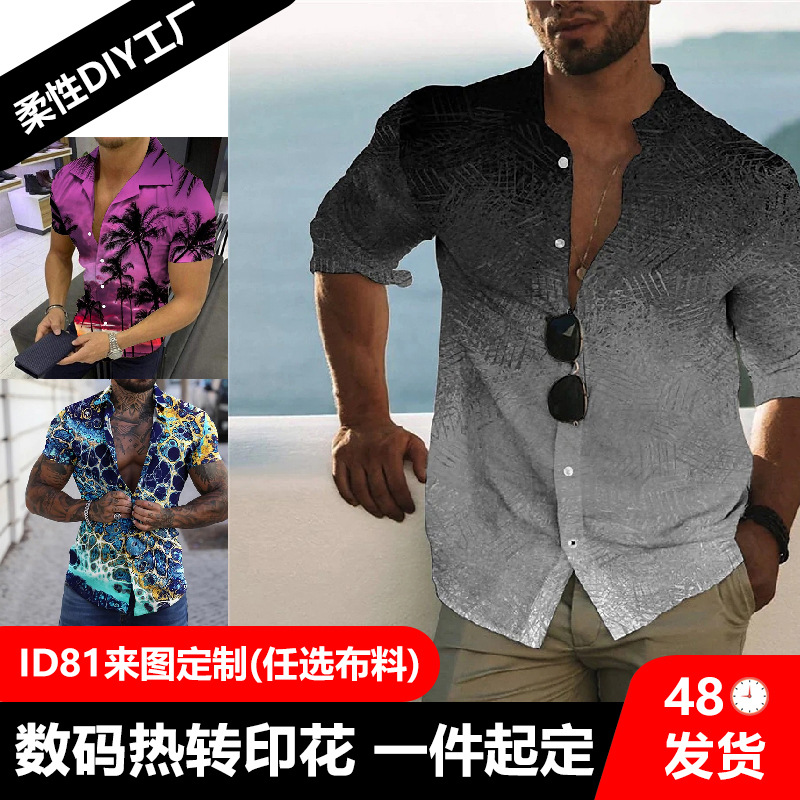 크로스 보더 남성용 셔츠 볼링 셔츠 스트라이프 패턴 쿠바 칼라 야외 캐주얼 반소매 셔츠 아마존