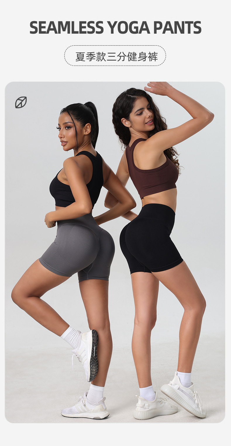 여름 신상 하이웨이스트 힙업 피트니스 팬츠, 여성 스포츠 복부 조절 사이클링 타이츠, 피치힙 요가 3점 반바지스토어 가기