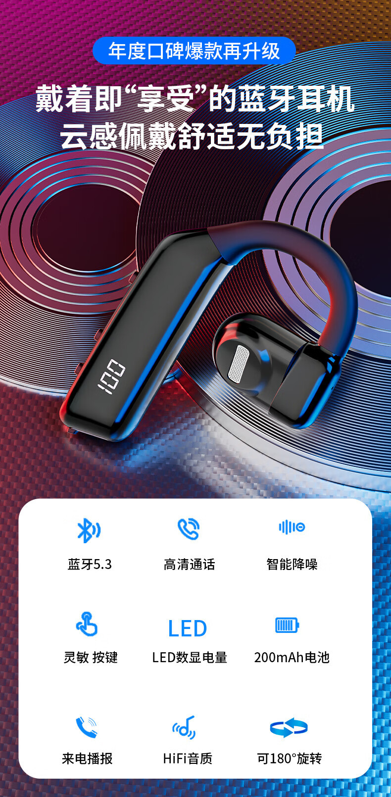 OWS 공기 전도 귀걸이 무선 블루투스 헤드셋 저지연 긴 배터리 수명 ENC 소음 감소 비즈니스 헤드셋 크로스 보더스토어 가기