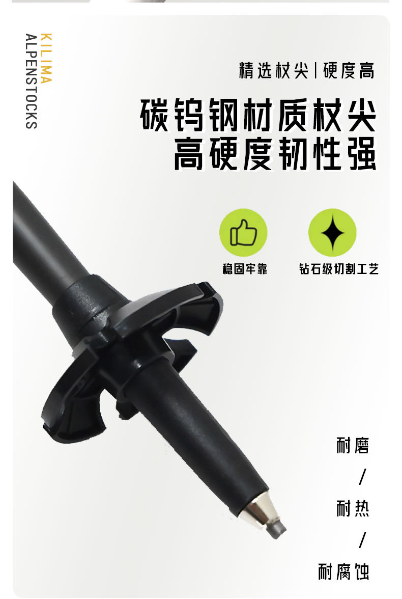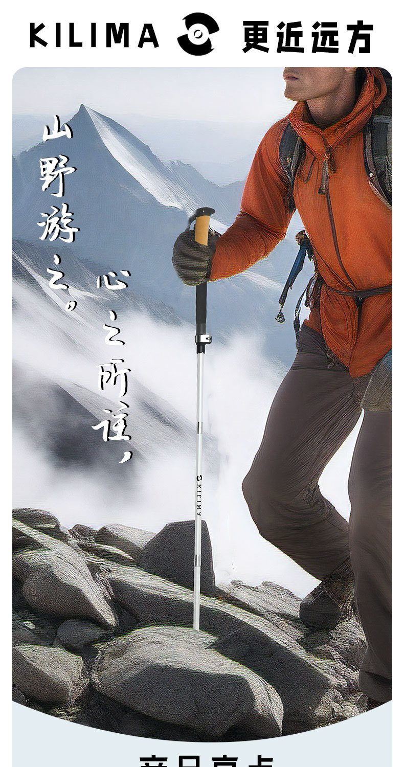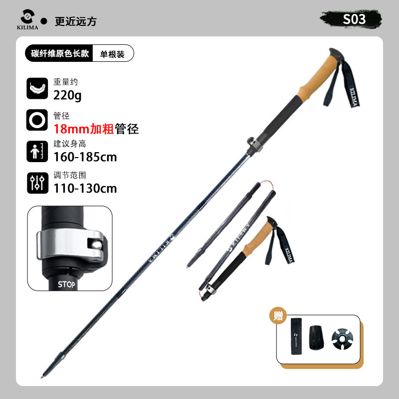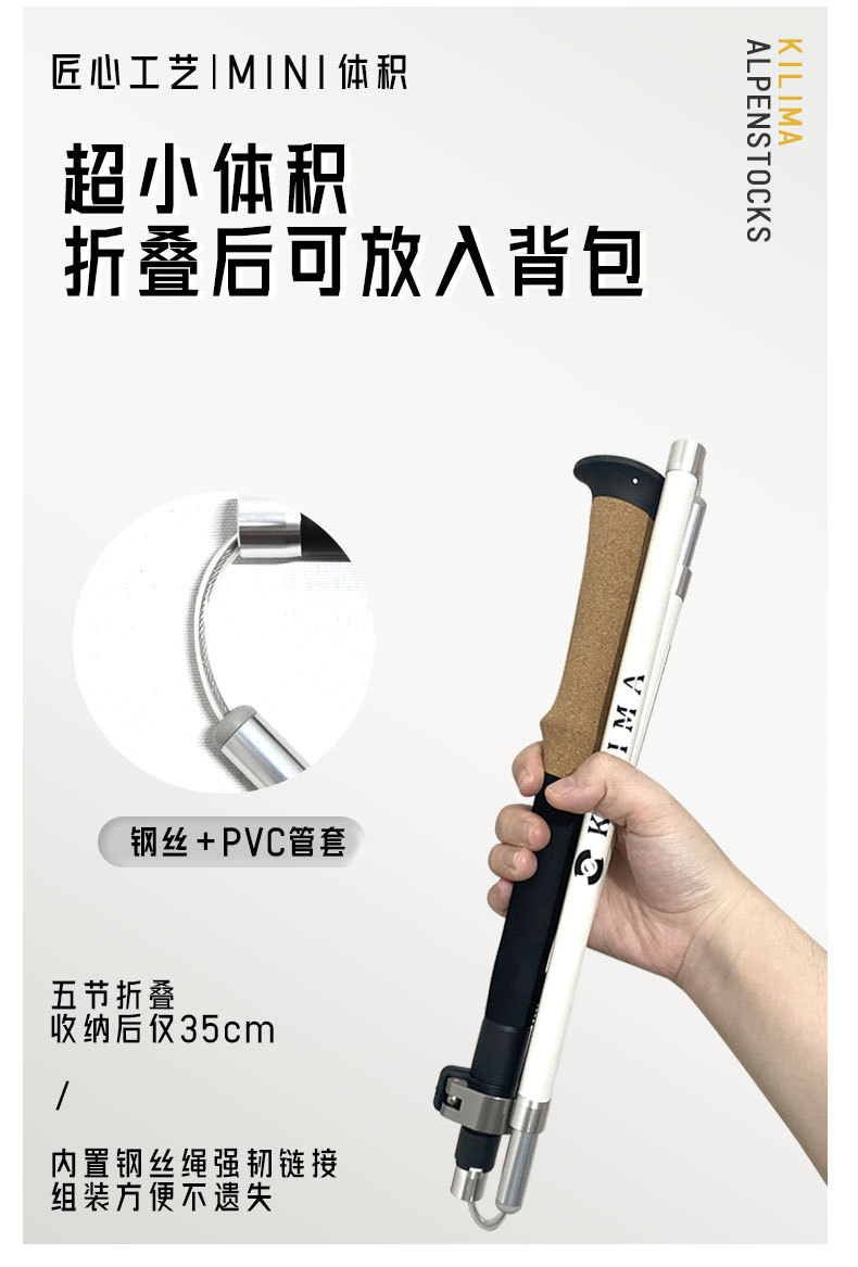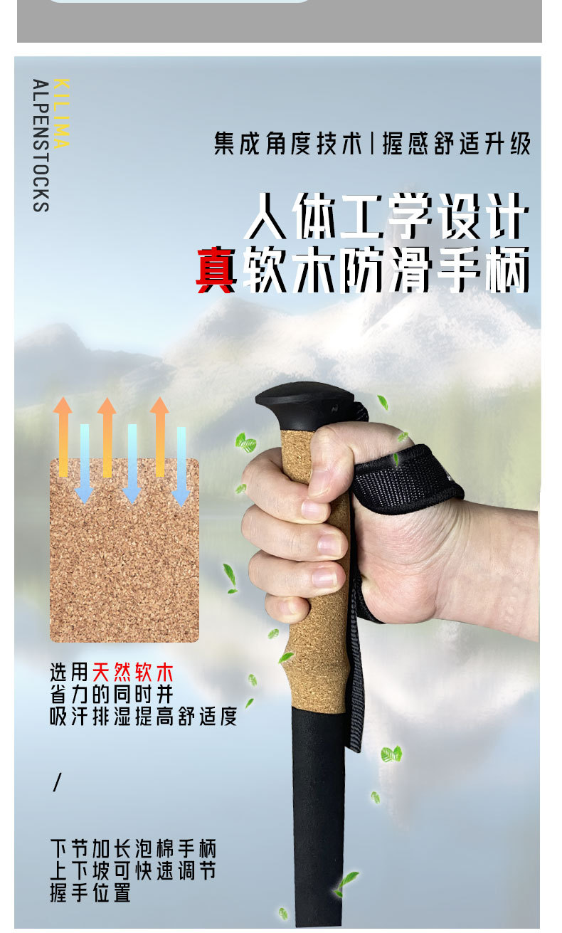 킬리마 접이식 등산 스틱, 소프트 코르크 손잡이, 탄소 섬유 금속 버클, 초경량 하이킹, 휴대용스토어 가기