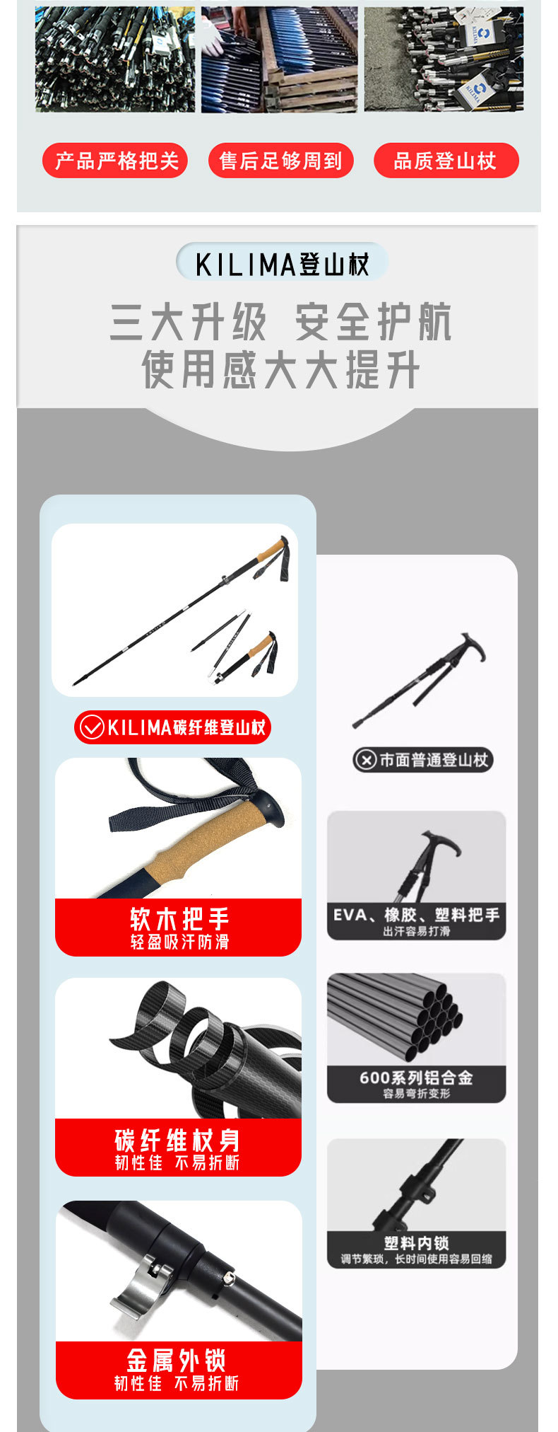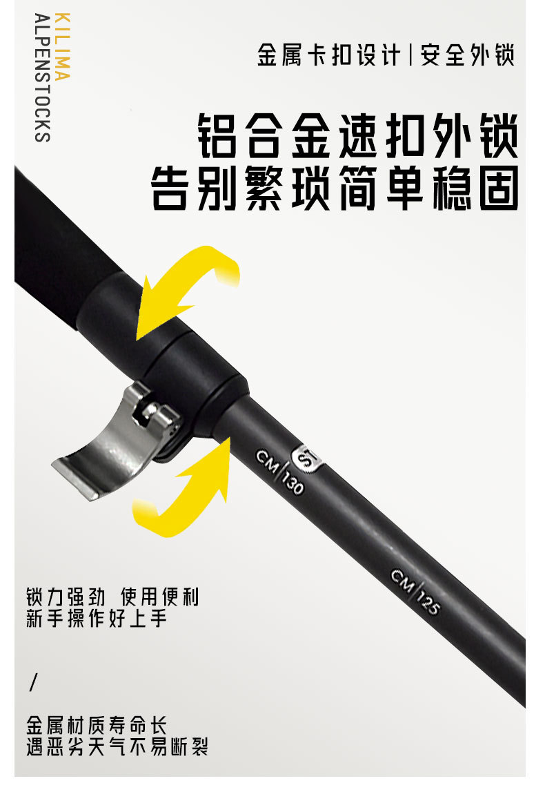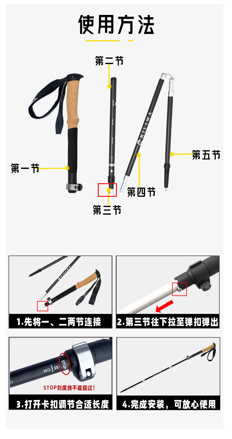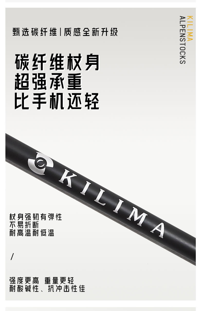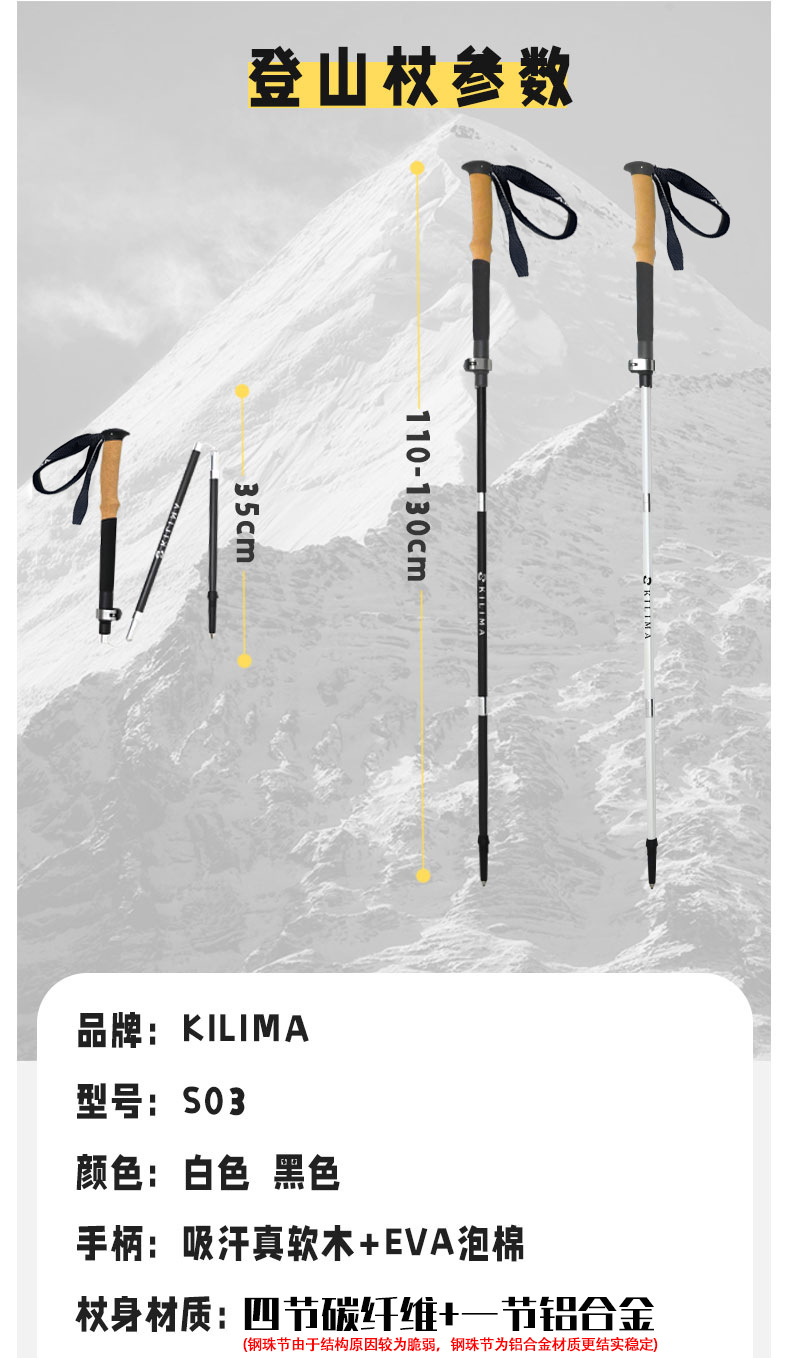 킬리마 접이식 등산 스틱, 소프트 코르크 손잡이, 탄소 섬유 금속 버클, 초경량 하이킹, 휴대용스토어 가기