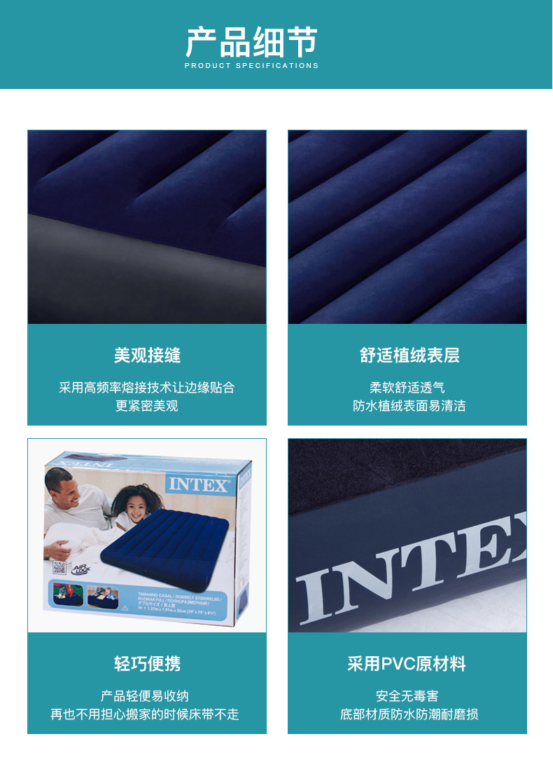 INTEX64757/64107 에어 쿠션 침대 풍선 매트리스 단일 가정용 초대형 바닥 깔기 접이식 침대 공압 침대