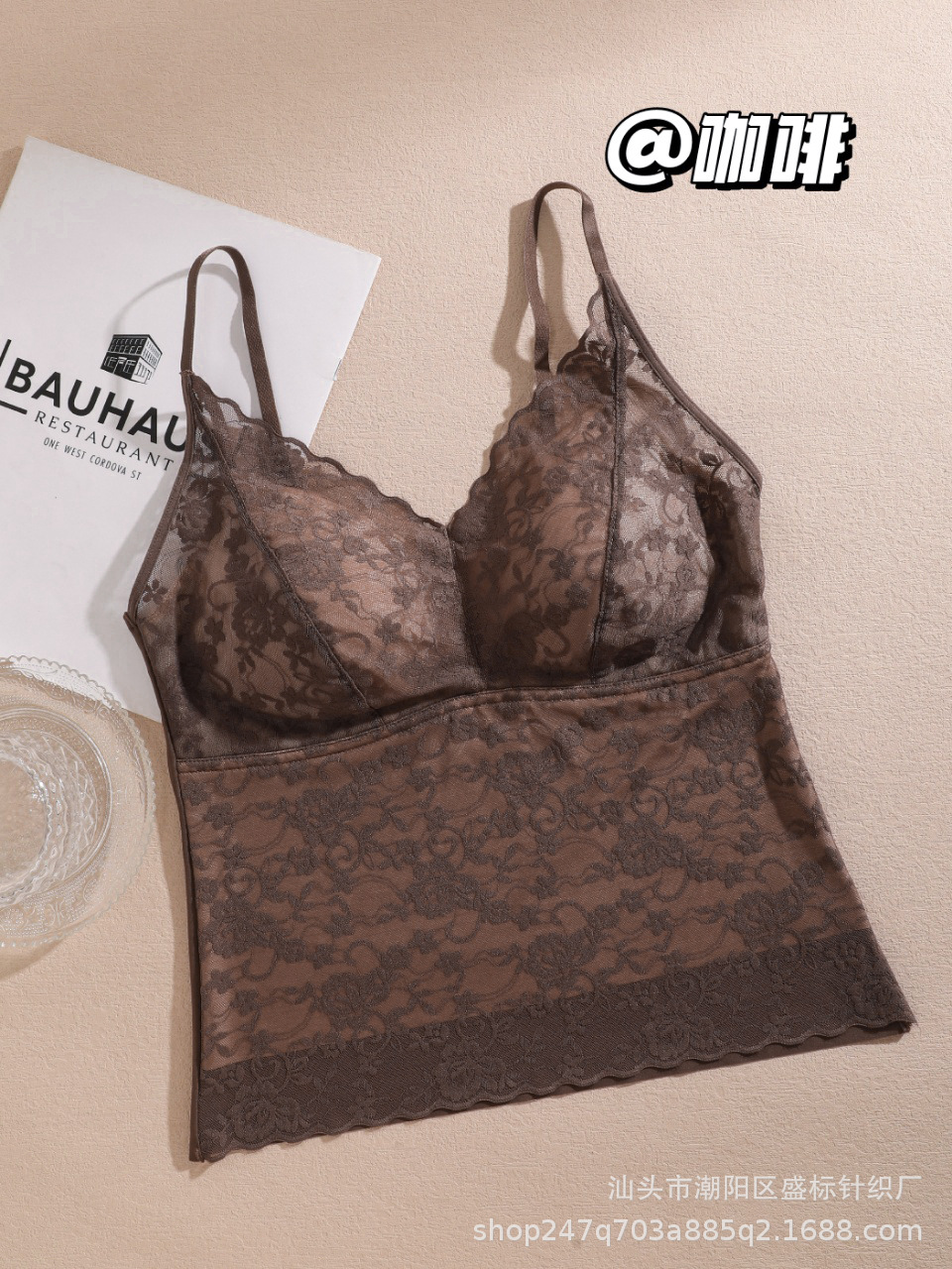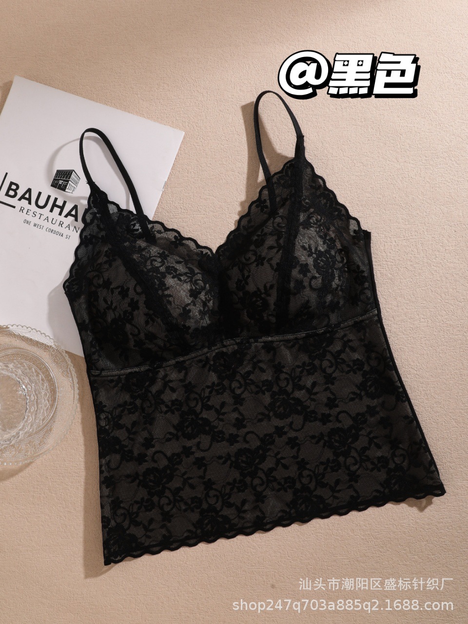순수한 욕망 요정 스타일 ~ 가을과 겨울 새로운 프랑스 스타일의 가벼운 럭셔리 레이스 뷰티 백 원피스 고정 컵 캐미솔스토어 가기