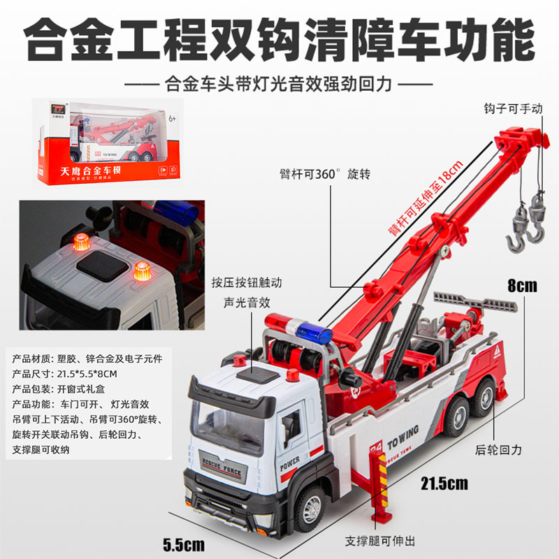 천이닝 합금 엔지니어링 트럭 모델 펌프 트럭 이중 후크 잔해 크레인 구조 트럭 플랫 트레일러 벌목 트럭 운송