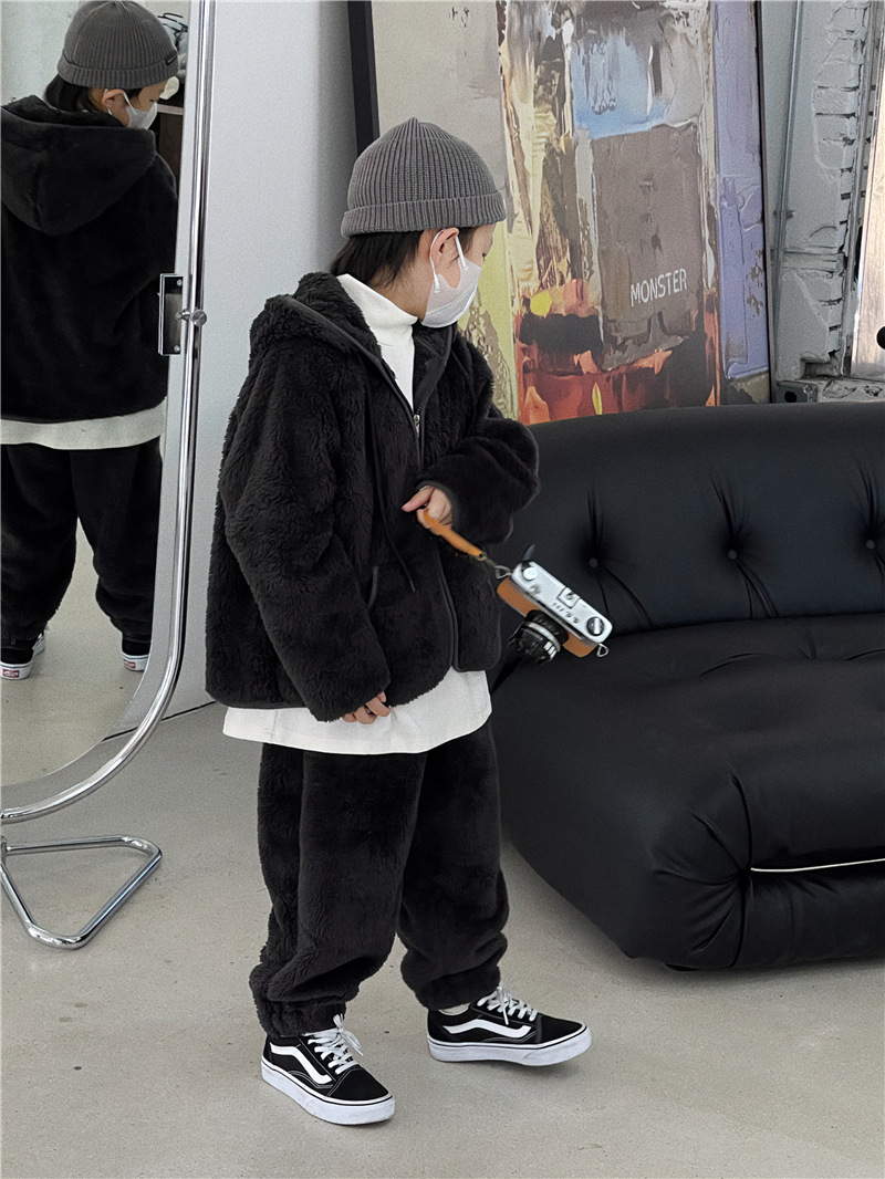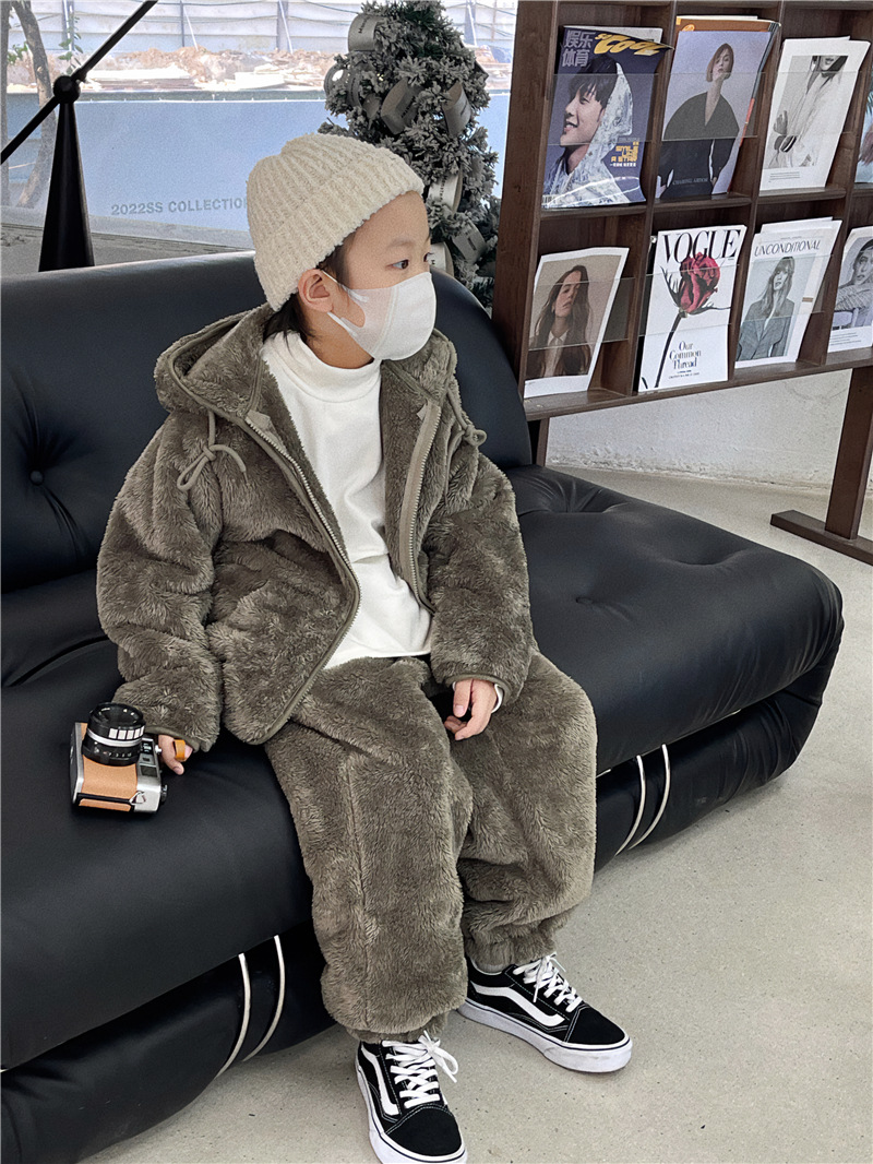 Baoduo 어린이 잠옷 소년 산호 양털 가을과 겨울 가정 의류 세트 2023 새로운 아기 두꺼운 따뜻한 겨울 의류스토어 가기