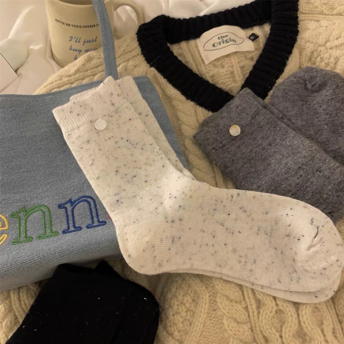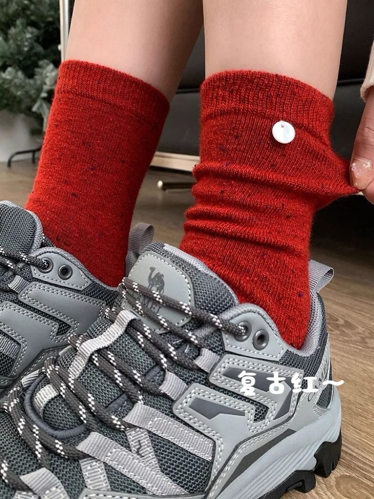 레트로 레드 ~ 컬러풀 도트 양 양모 인 한국 스택 양말 따뜻한 쉘 버튼 겨울 미드 튜브 여성용 양말스토어 가기