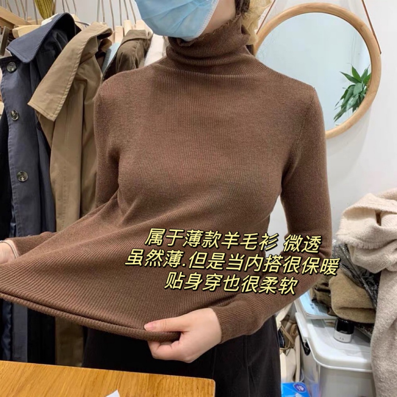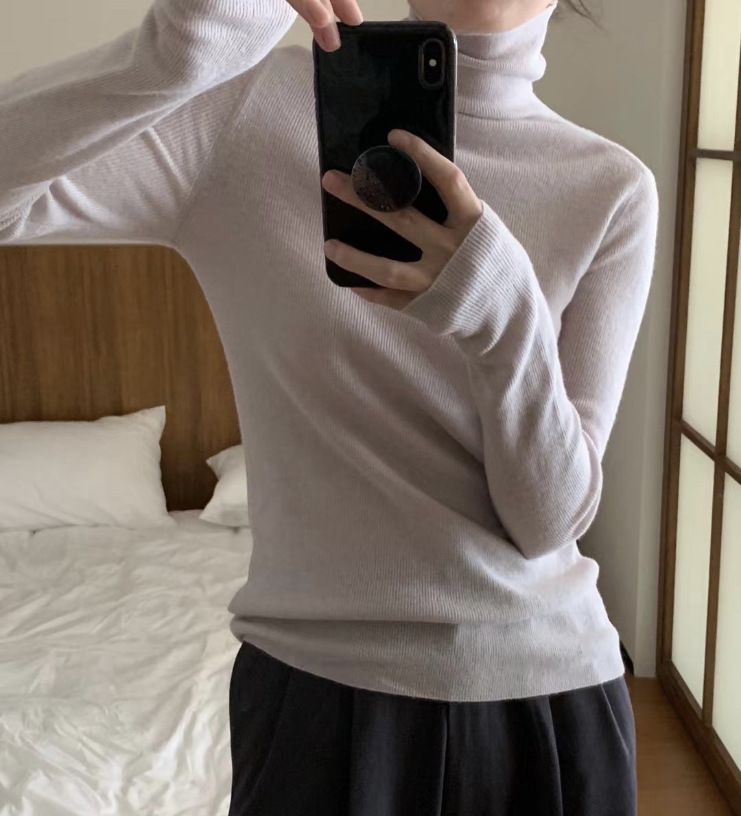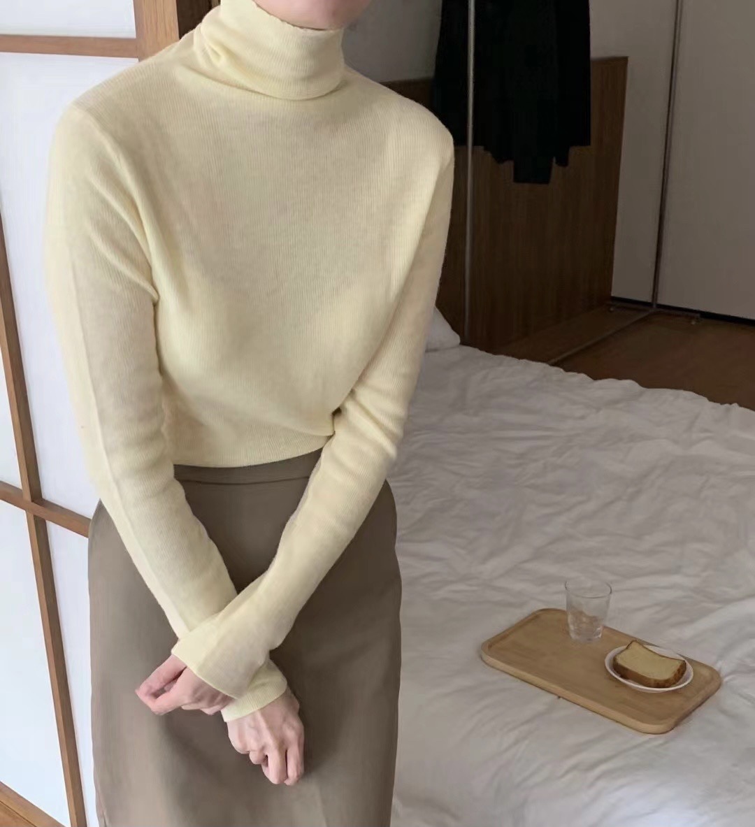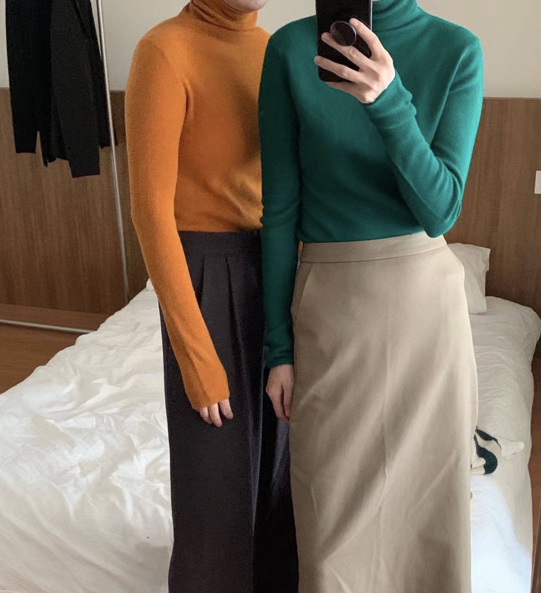 [울] 니트 스웨터 부드럽고 섬세한 하이넥 스타일 슬림핏 이너웨어 여성용 겨울스토어 가기