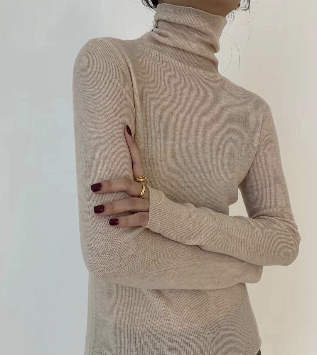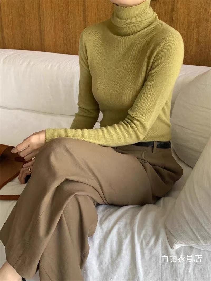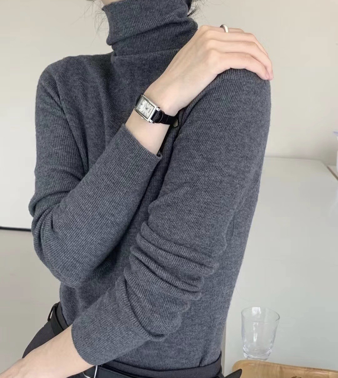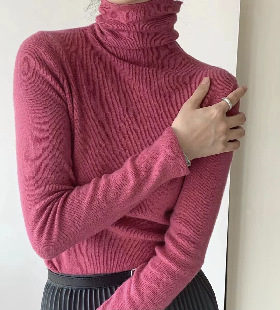 [울] 니트 스웨터 부드럽고 섬세한 하이넥 스타일 슬림핏 이너웨어 여성용 겨울스토어 가기