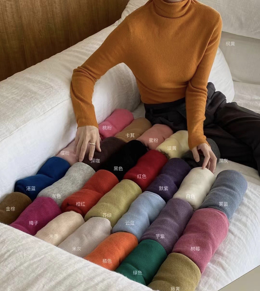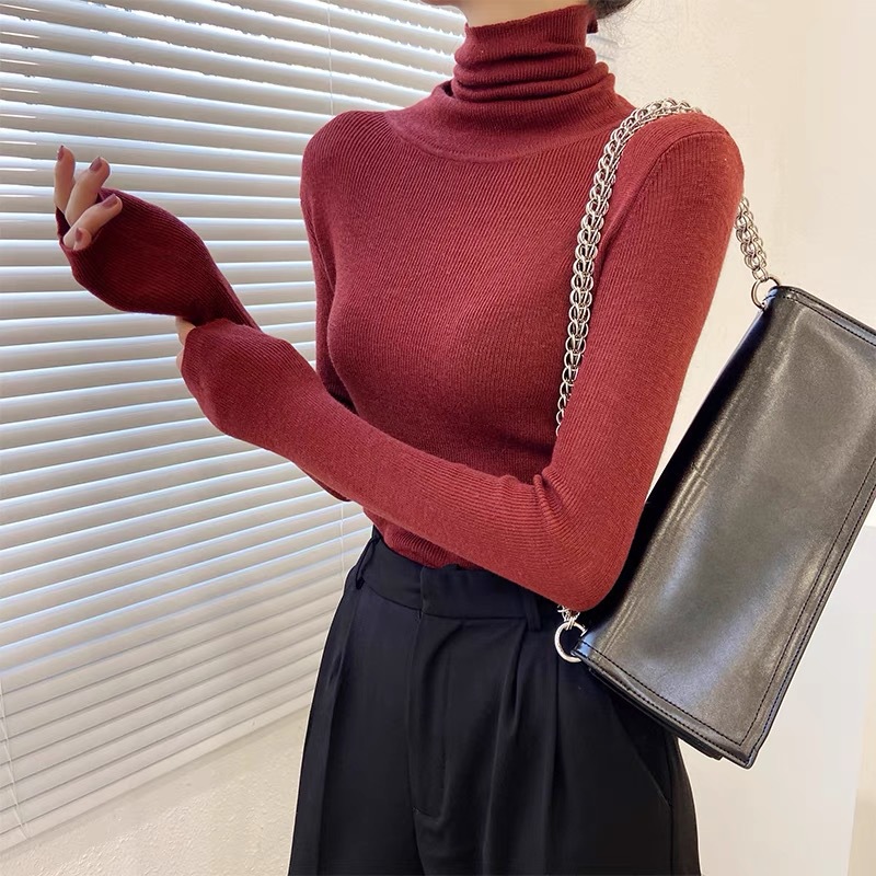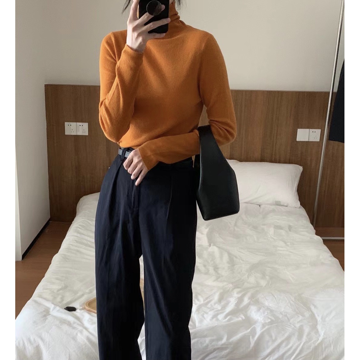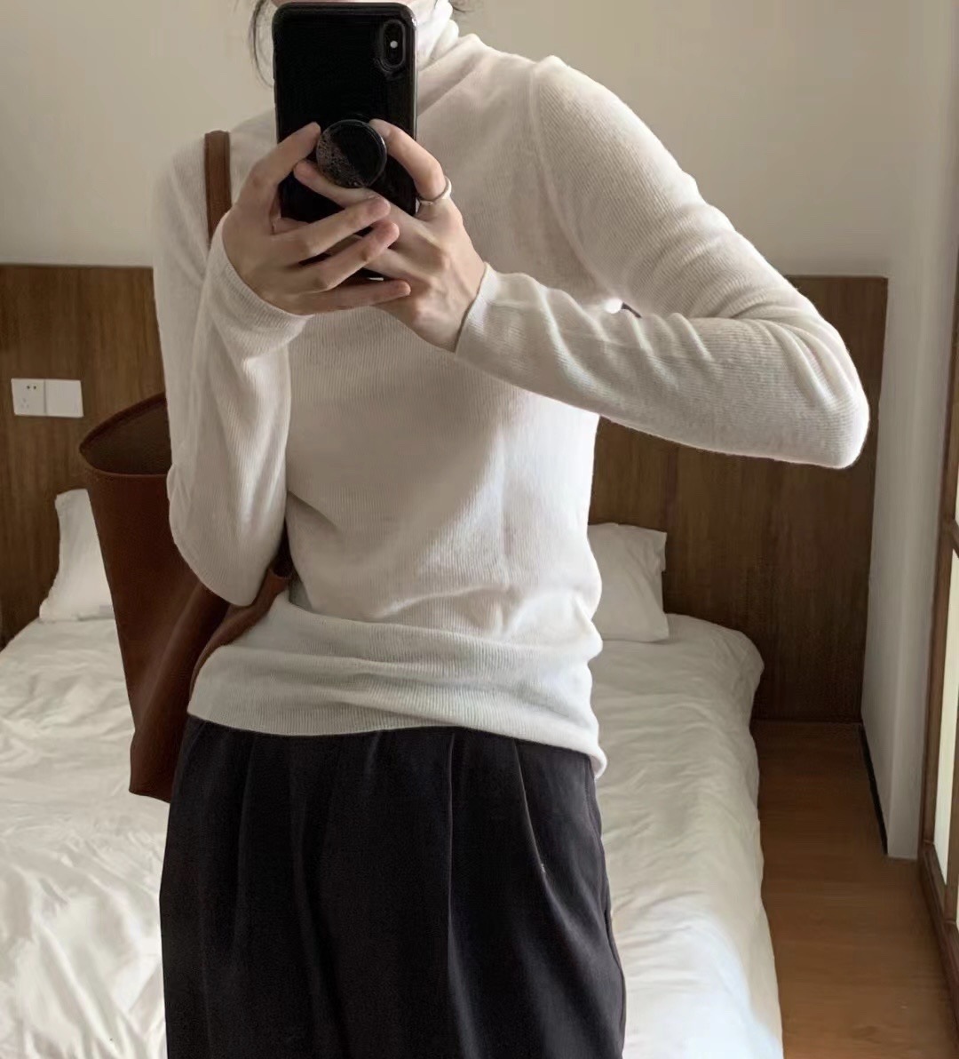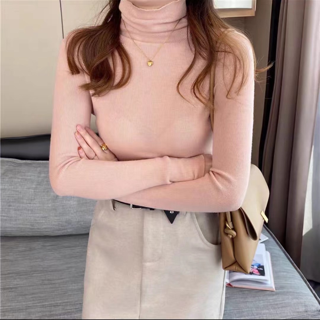 [울] 니트 스웨터 부드럽고 섬세한 하이넥 스타일 슬림핏 이너웨어 여성용 겨울스토어 가기