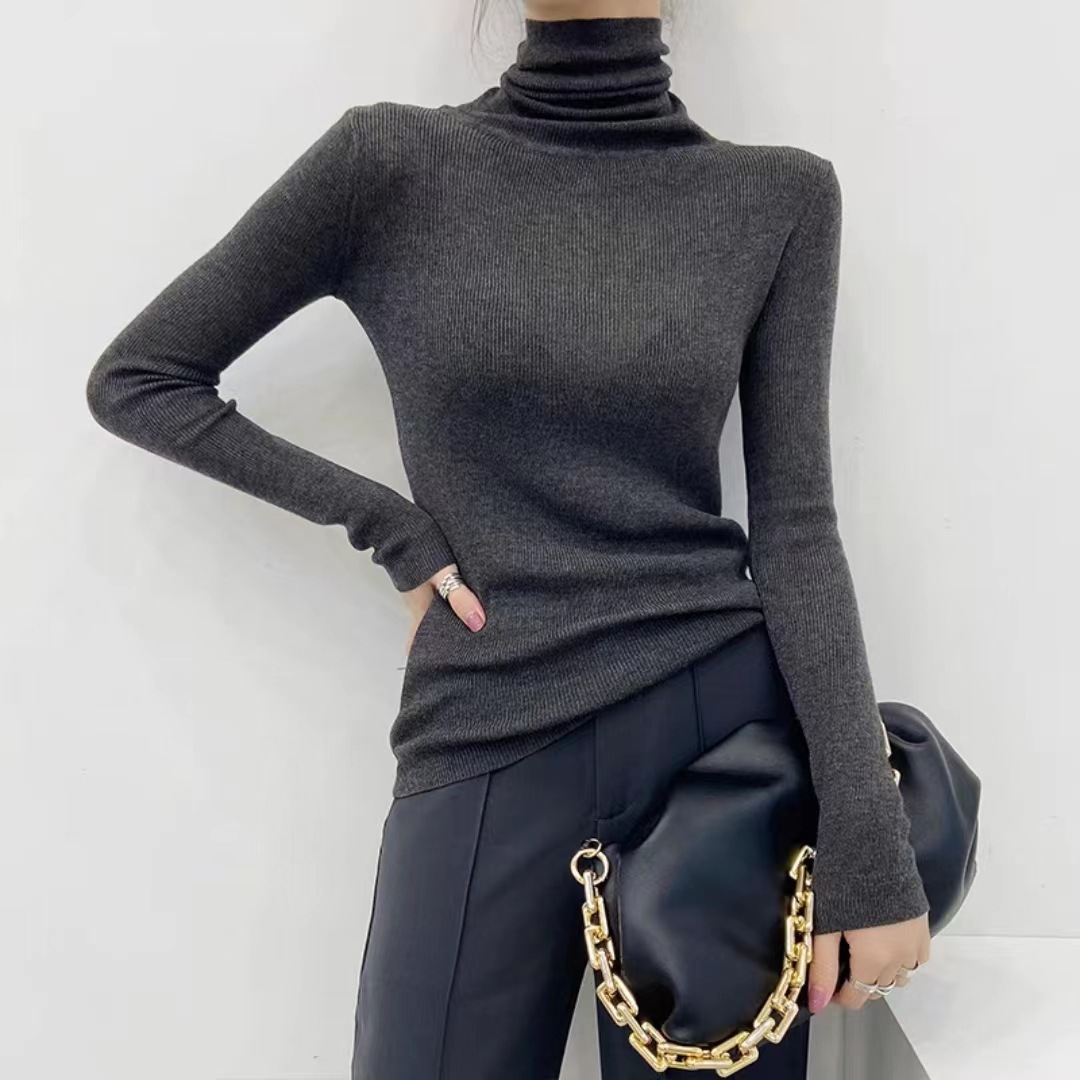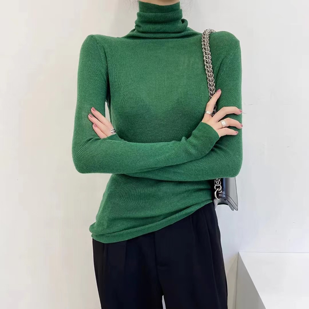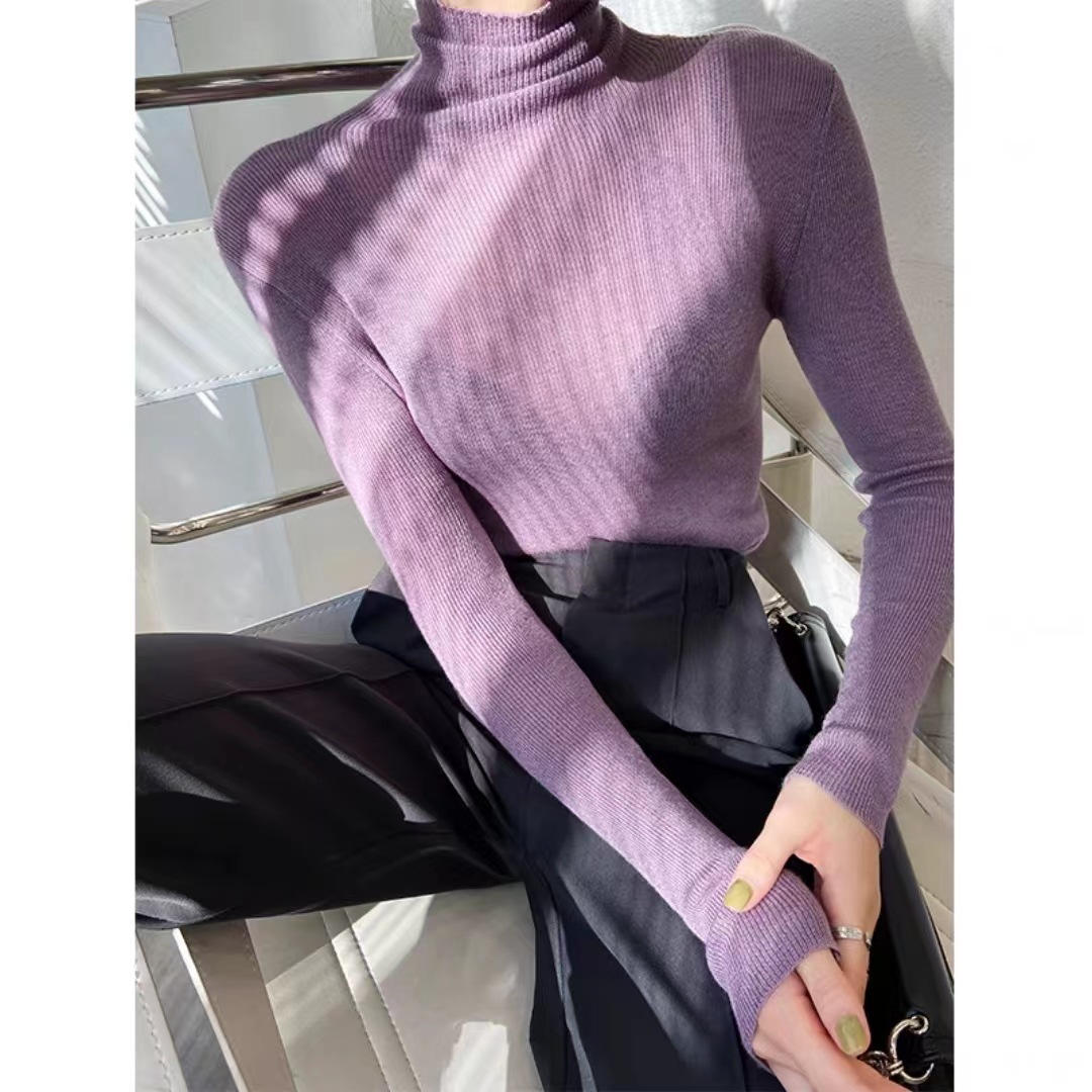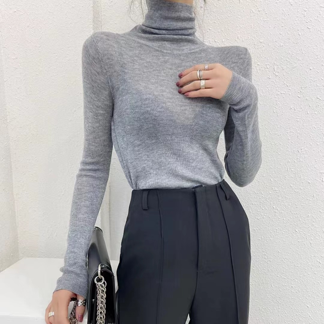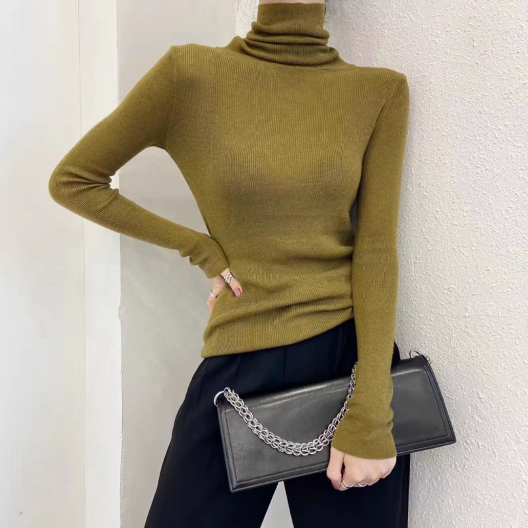 [울] 니트 스웨터 부드럽고 섬세한 하이넥 스타일 슬림핏 이너웨어 여성용 겨울