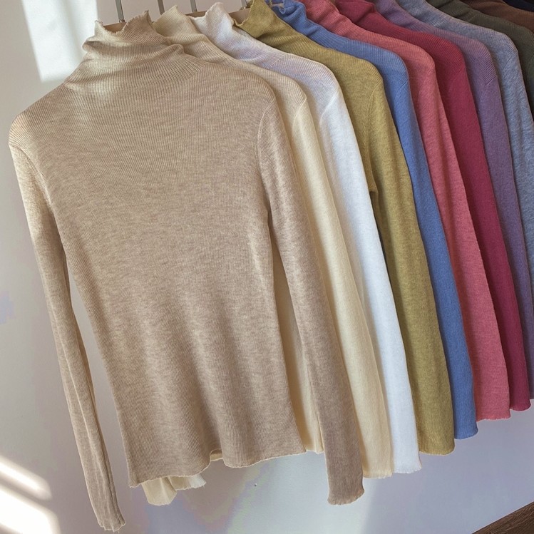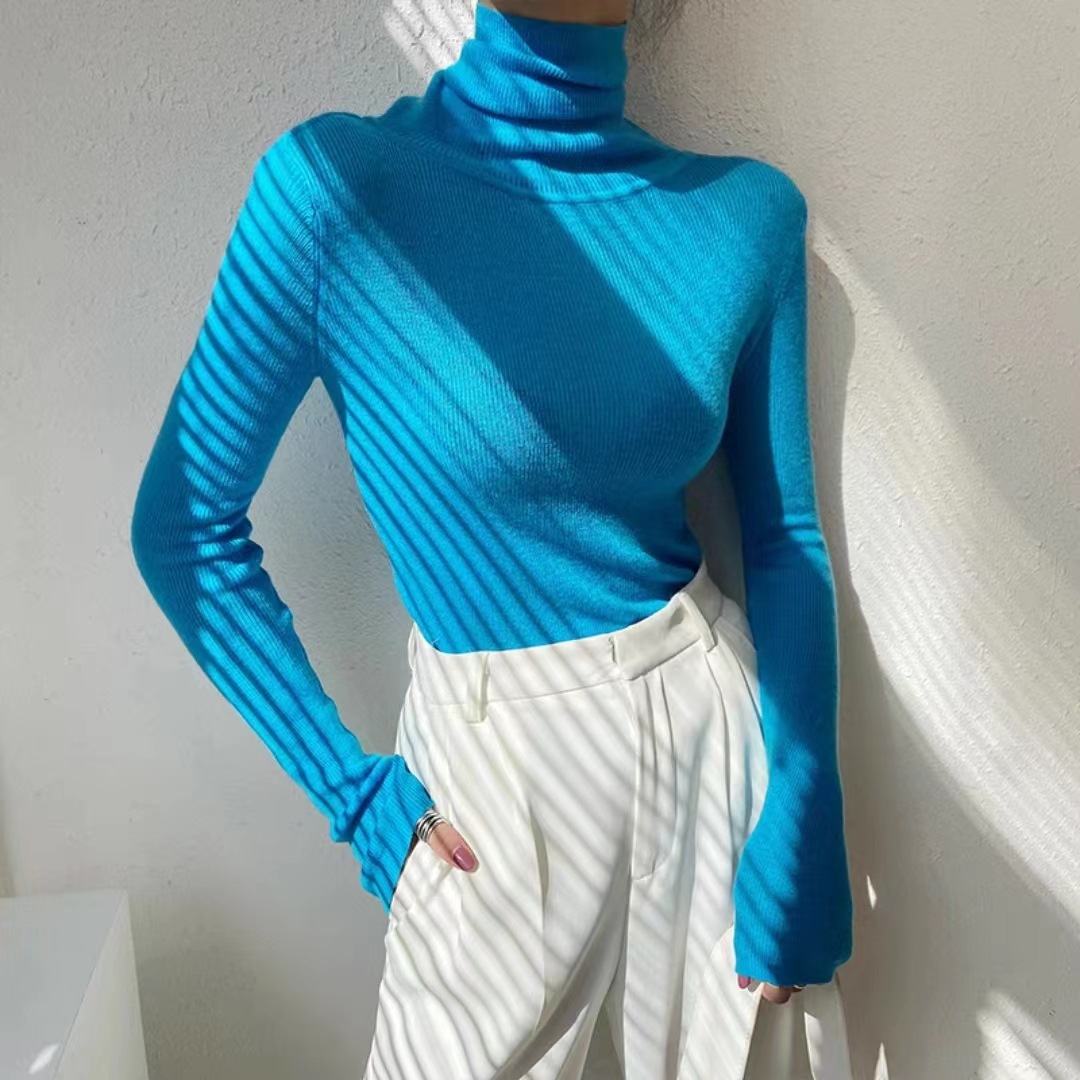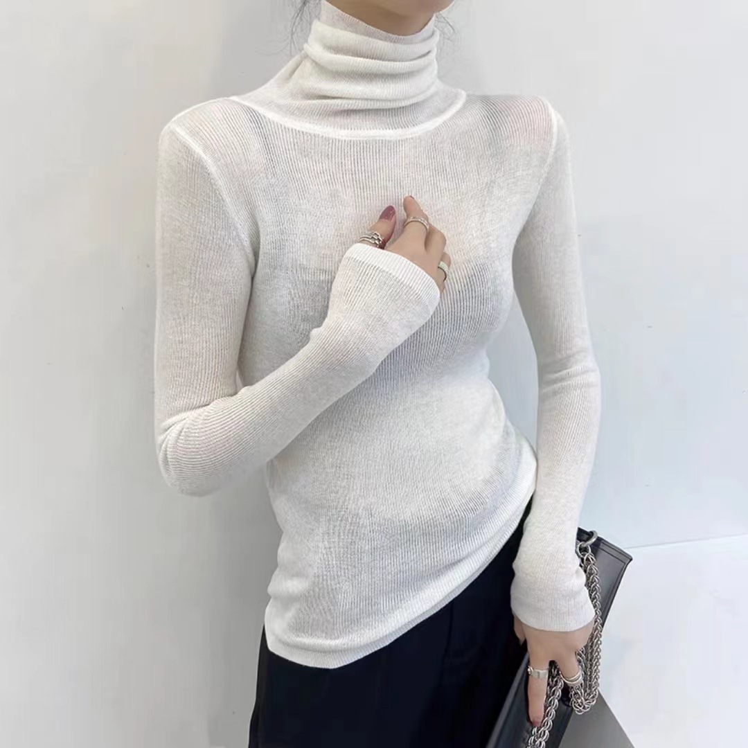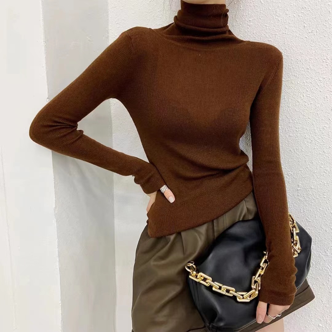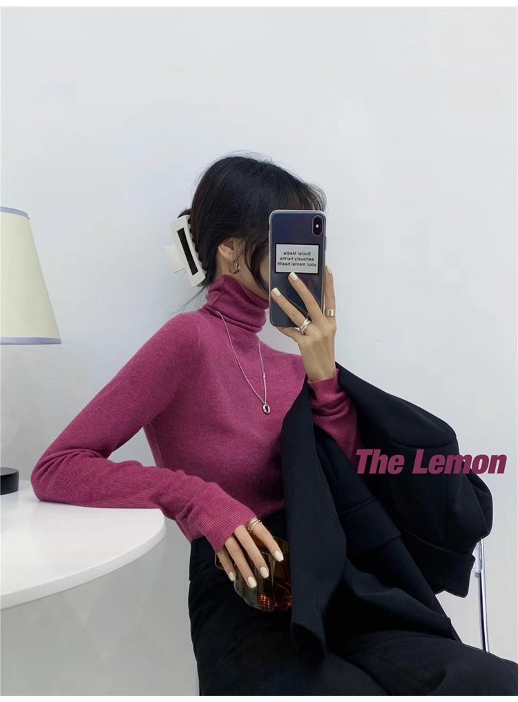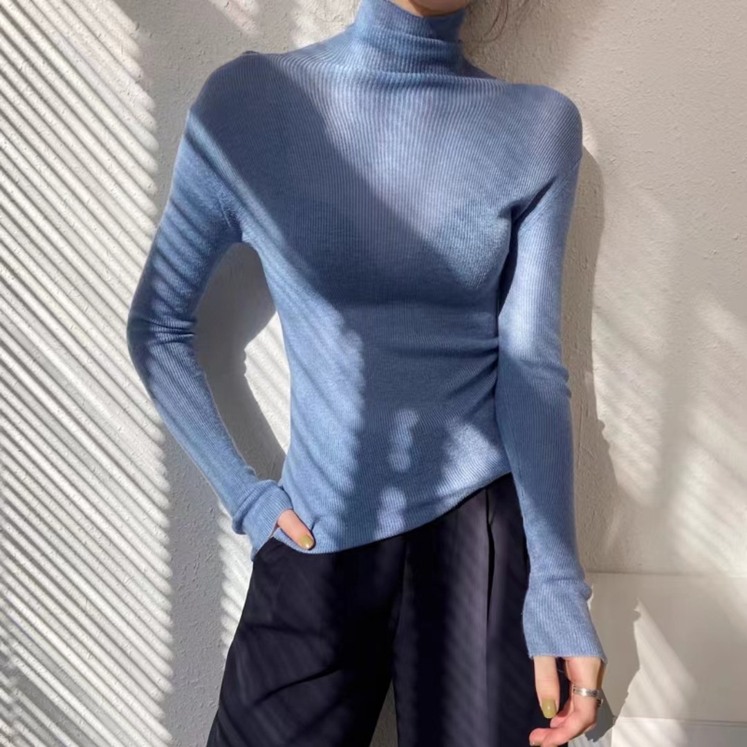[울] 니트 스웨터 부드럽고 섬세한 하이넥 스타일 슬림핏 이너웨어 여성용 겨울