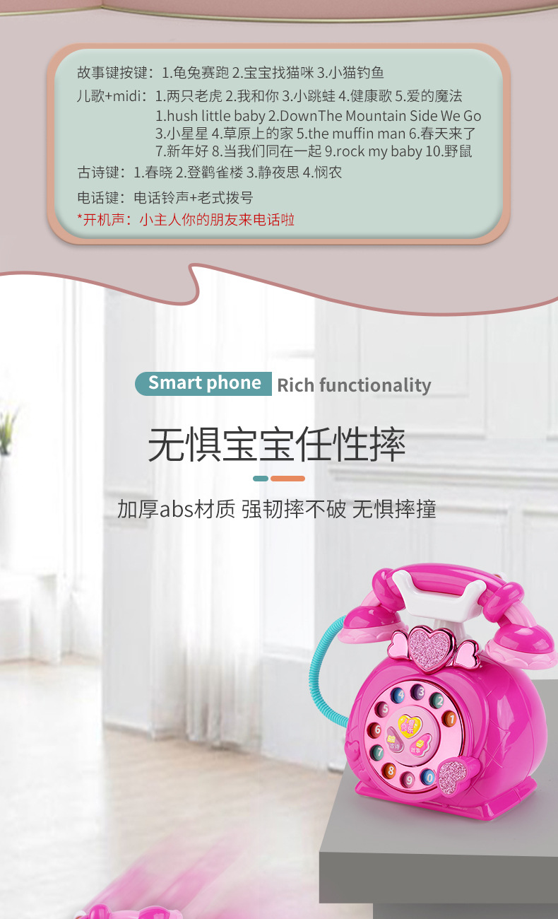 새로운 시뮬레이션 전화 접속 조기 교육 기계 만화 복고풍 소리와 라이트 폰 유선 전화 여자 선물 유치원 교육 완구스토어 가기