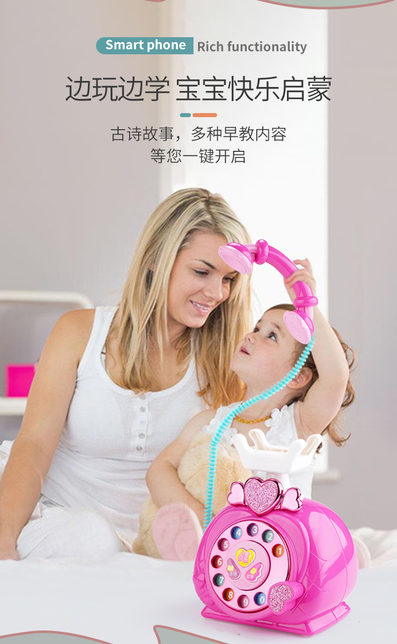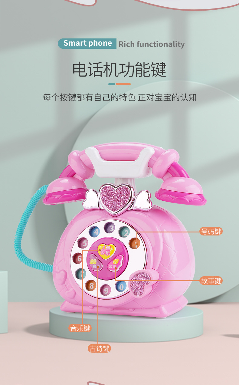 새로운 시뮬레이션 전화 접속 조기 교육 기계 만화 복고풍 소리와 라이트 폰 유선 전화 여자 선물 유치원 교육 완구
