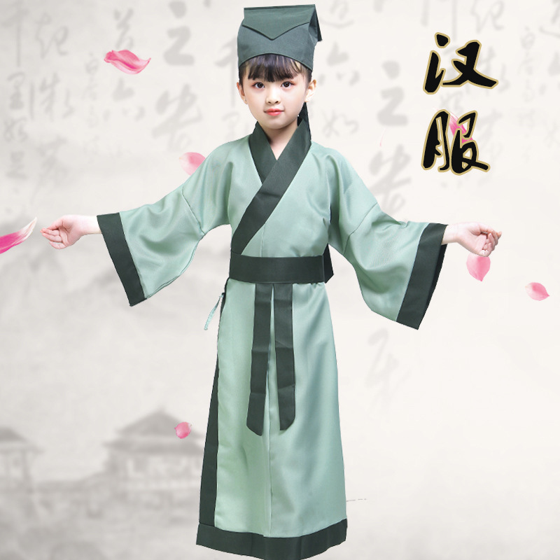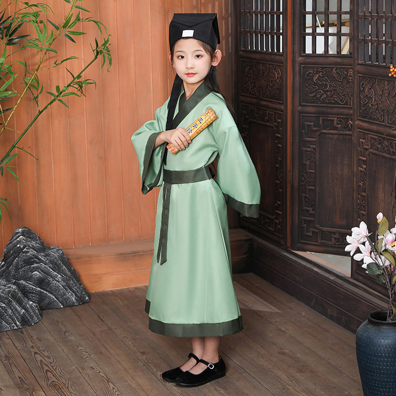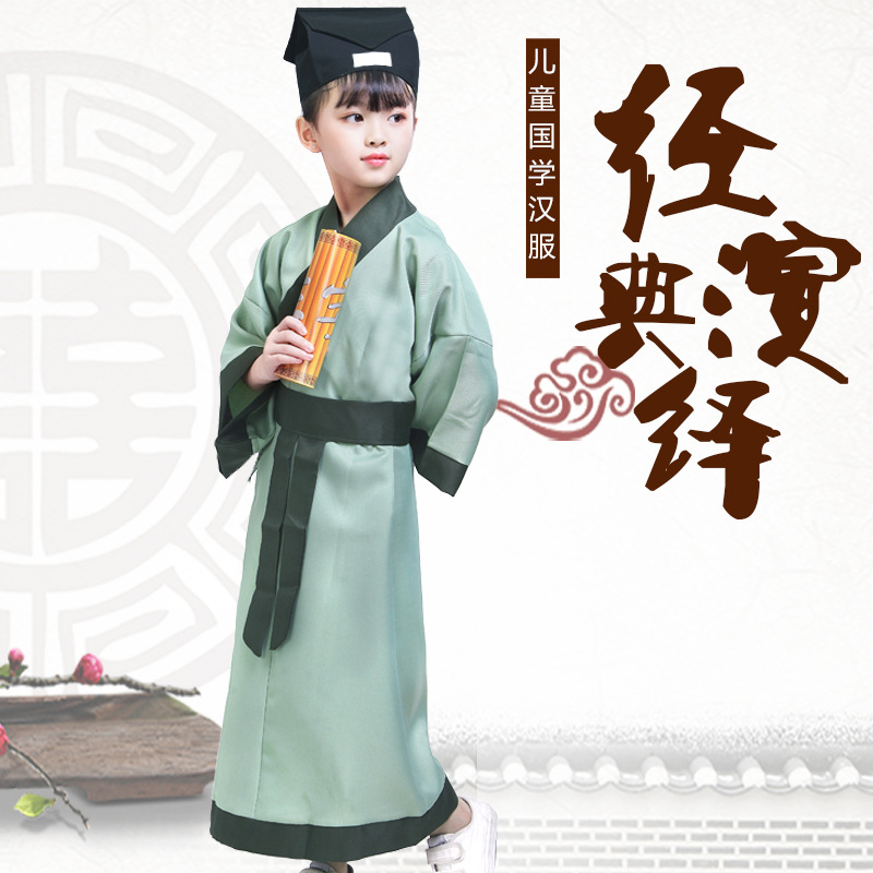 어린이 고대 의상 Hanfu Guoxue 의상 소녀 소년의 3 자 수트라 중국 스타일 학교 어린이 책 테이블 공연 의상